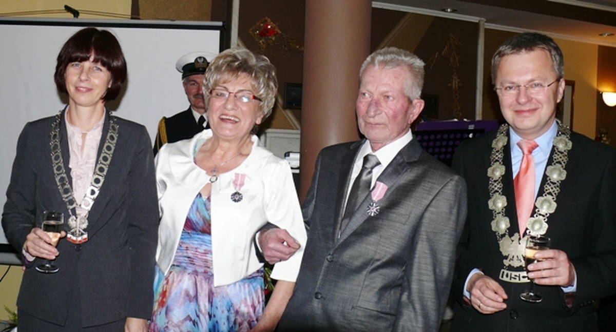 Pięćdziesiąt lat nieprzerwanego pożycia małżeńskiego świętowało 4 grudnia małżeństwo  Urszuli i Czesława  Wawrzyniaków z Darłowa. Podczas uroczystości w  Rezydencji Legrams dostojni jubilaci ponowili przysięgę małżeńską. Z tej okazji w imieniu Prezydenta RP burmistrz Darłowa Arkadiusz Klimowicz uhonorował jubilatów Medalami za Długoletnie Pożycie Małżeńskie.