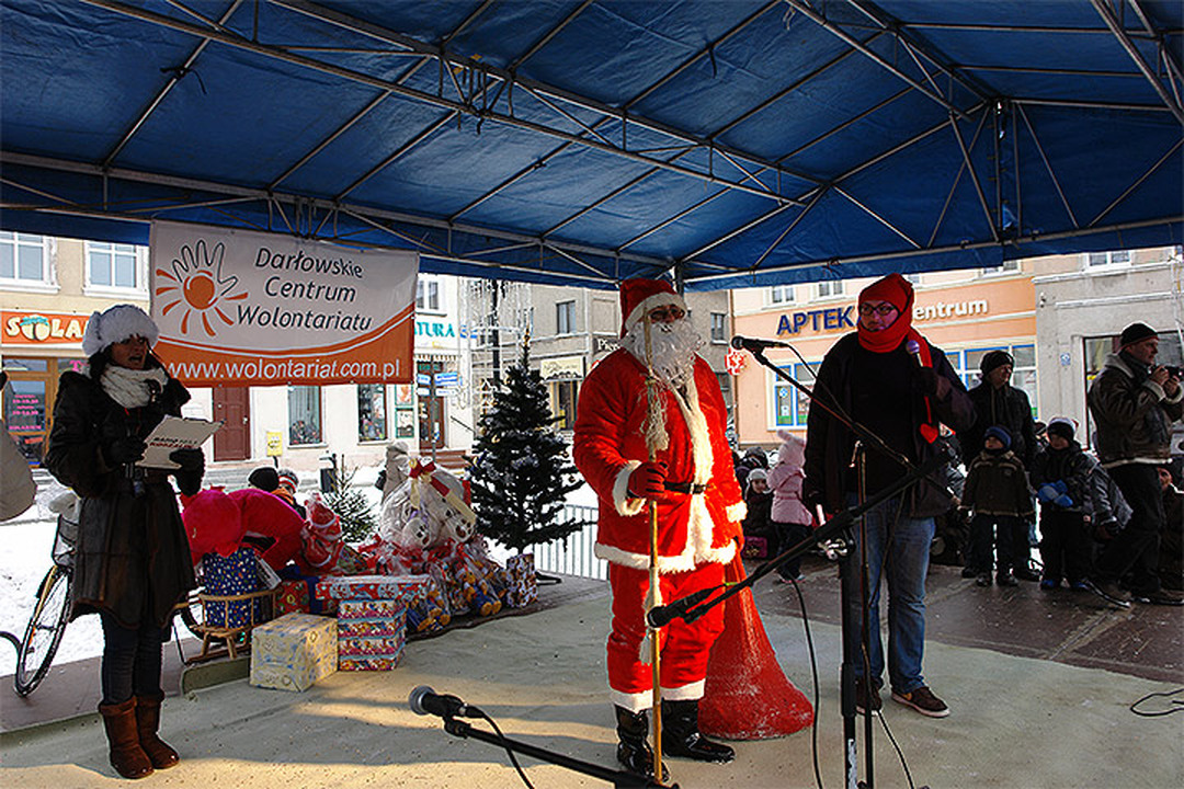 W niedzielę 9 grudnia na rynku miejskim w Darłowie odbyła się wspaniała, mikołajkowa impreza organizowana przez darłowskich wolontariuszy. IV Darłowska Laponia Świętego Mikołaja rozpoczęła się punktualnie o godzinie 13:00. Na scenie wystąpiły dzieci z niemalże wszystkich przedszkoli i szkół miejskich. Niezwykle spektakularnym punktem imprezy, jednocześnie najbardziej oczekiwanym przez najmłodszych było „wpłynięcie" na darłowski rynek łodzi Świętego Mikołaja. Jak na charakter miasta przystało była to oprawa w iście nadmorskim klimacie. Lapońskiemu Przybyszowi towarzyszyła Kompania Reprezentacyjna Zespołu Szkół Morskich. Tuż za nią w paradzie udział wziął klub morsów z Darłowa - Darłowscy Twardziele oraz zaprzyjaźnione kluby z innych miejscowości. Licznie przybyli na rynek mieszkańcy miasta oraz regionu gromkimi brawami i okrzykami powitali Mikołaja w królewskim mieście. Nie zabrakło prezentów, słodkości od lapońskich gości oraz Mega Paki od Czerwonego Brodaka. Ponadto darłowscy wolontariusze po raz ostatni w tym roku zaśpiewali Wolontariusza grupy Sami.