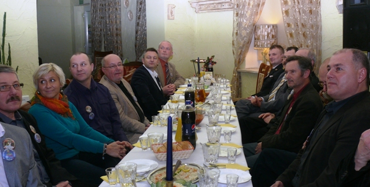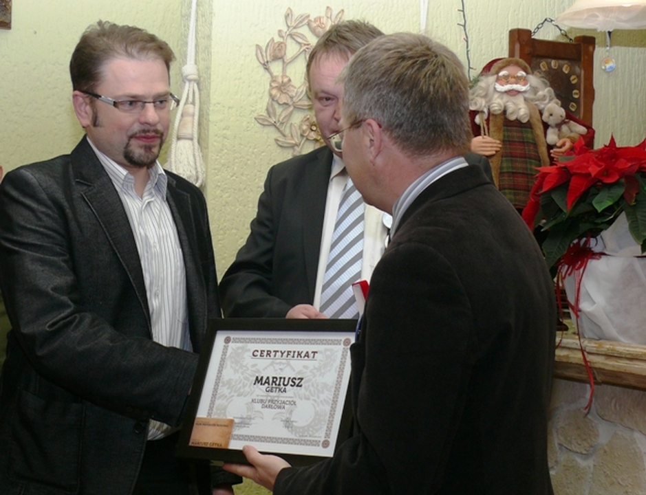 Oprócz wędkarzy przybyli na świąteczne spotkanie starosta powiatu sławieńskiego Wojciech Wiśniowski, burmistrz miasta Darłowo Arkadiusz Klimowicz, dyrektor Urzędu Morskiego Tomasz Bobin, ekipa Programu Telewizyjnego Taaaka Ryba”, przedstawiciele zarządu Okręgu Koszalińskiego PZW, redaktorzy gazet wędkarskich i sponsorzy zawodów wędkarskich. Nie zabrakło również wielu przyjaciół i sympatyków darłowskich wędkarzy.    Jak zwykle o tej porze roku spotykamy się od wielu lat przy wspólnym stole mówił Piotr Ebel prezes Koła PZW „Łosoś”. Po krótkim podsumowaniu udanego sezonu wędkarskiego wszystkim przybyłym złożył życzenia świąteczne i podziękował za owocną współpracę, pomoc i sponsorowanie licznych zawodów wędkarskich. Z okazji kończących się obchodów siedemsetlecia drugiej lokacji miasta Darłowo włodarz grodu Arkadiusz Klimowicz wręczył najbardziej zasłużonym dla pomorskiego wędkarstwa okolicznościowe medale i certyfikaty Klubu Przyjaciół Darłowa. Medale otrzymała Kadra Polski w Wędkarstwie Morskim: Mariusz Getka, Witold Janiak, Roman Olma, Krzysztof Sosnowski, Jerzy Bajer, Piotr Ziółkowski, Janusz Ciesielski, Janusz Kosiński, Czesław Mogilnicki, Piotr Wach, Marek Przybylak, Zdzisław Drewnik, Jan Drewnik, Jerzy Musiał i trener kadry-Dionizy Ziemiecki, Jerzy Biedrzycki redaktor Programu telewizyjnego Taaaka Ryba, redaktorzy i dziennikarze; Marek Kluczek, Karol Zacharczyk, Józef Wróblewski – wszyscy z Wiadomości Wędkarskich, Marek Szymański – miesięcznik Wędkarski Świat, Wiesław Dębicki – Wędkarz Polski, Jerzy Szczeciński – Komisja Morska PZW, Wojciech Olszewski – profesor z Uniwersytetu Mikołaja Kopernika w Toruniu, Jarosław Mintus – Zachodniopomorskie Wędkowanie, Janusz Nyk – prezes PZW okręg Koszalin, Karol Jędrej. Specjalne Certyfikaty Klubu Przyjaciół Darłowa z rąk burmistrza miasta otrzymali: Matriusz Getka, Jerzy Szczeciński, Dionizy Ziemiecki, Jerzy Biedrzycki, Marek Kluczek, Marek Szymański, Karol Zacharczyk, Jozef Wróblewski, Wiesław Dębicki, Wojciech Olszewski, Jarosław Mintus. Również Jerzy Biedrzycki twórca Programu Telewizyjnego z okazji dwudziestolecia programu wręczył dyplomy i Odznaki Przyjaciela Programu. Otrzymali je m.in.: Piotr Ebel, Arkadiusz Klimowicz, Wiesław Szklany, Paweł Paćkowski, Ryszard Sadowski, Zbigniew Surgiel, Grzegorz Rzucidło, Piotr Pedrycz, Wiesław Dębicki, Marek Szymański, Mieczysław Siwiec, Dariusz Kos, Antoni Hołub i inni.                                       Poza tym Piotr Ebel w ramach podziękowań wręczył burmistrzowi miasta Darłowo - Arkadiuszowi Klimowiczowi medal „Za zasługi dla wędkarstwa” przyznany przez zarząd okręgu PZW Koszalin a redaktorowi PT „Taaaka Ryba” Jerzemu Biedrzyckiemu z okazji 20-lecia pamiątkową statuetkę. Na świątecznym stole jak na wędkarzy przystało pełno było znakomitych specjałów z ryb. Nie zabrakło tradycyjnego bigosu, pierogów.