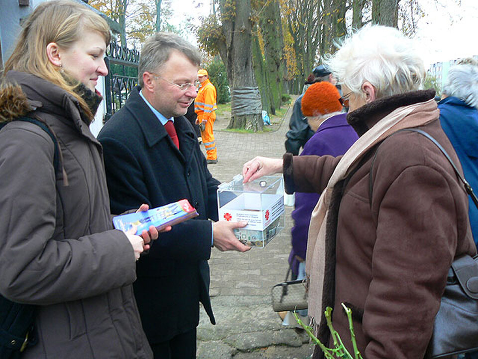 1 listopada na cmentarzu w Darłowie odbyła się po raz drugi kwesta na rzecz budowy Domu Hospicyjno – Opiekuńczego Caritas im. Biskupa Czesława Domina prowadzonego przez Caritas Diecezji Koszalińsko – Kołobrzeskiej. W kweście uczestniczyli Burmistrz Miasta Arkadiusz Klimowicz i Jego zastępca Elżbieta Karlińska oraz Przewodniczący Rady Miejskiej Zbigniew Grosz oraz Radni: Bożena Magier, Krystyna Sokolińska, Renata Potomska, Krystyna Różańska, Dorota Podgórska, Tomasz Mielczarek, pielęgniarki, członkowie Caritas Parafii pw. św. Gertrudy oraz wolontariusze. Mam nadzieje, iż stanie się tradycją kwestowanie na ten cel przez osoby znane społecznie. W wyniku przeprowadzonej zbiórki uzbieraliśmy 9.698,00 zł, która to kwota zostanie przekazane na zapłatę powstającej dokumentacji architektonicznej Domu Caritas. Składam serdeczne podziękowanie wszystkim kwestującym oraz ofiarodawcą informując zarazem, że każdego 15 dnia miesiąca w kościele pw. św. Gertrudy w Darłowie odprawiana jest Msza św. w intencji Przyjaciół, Dobrodziejów Domu Hospicyjno – Opiekuńczego Caritas.