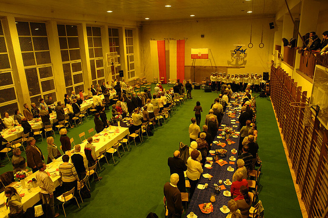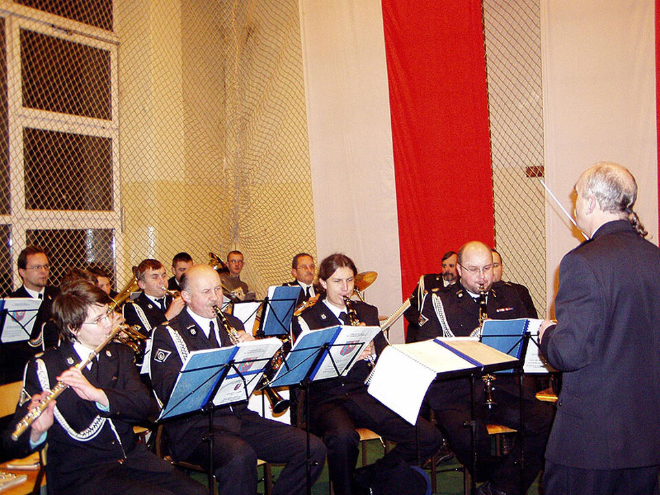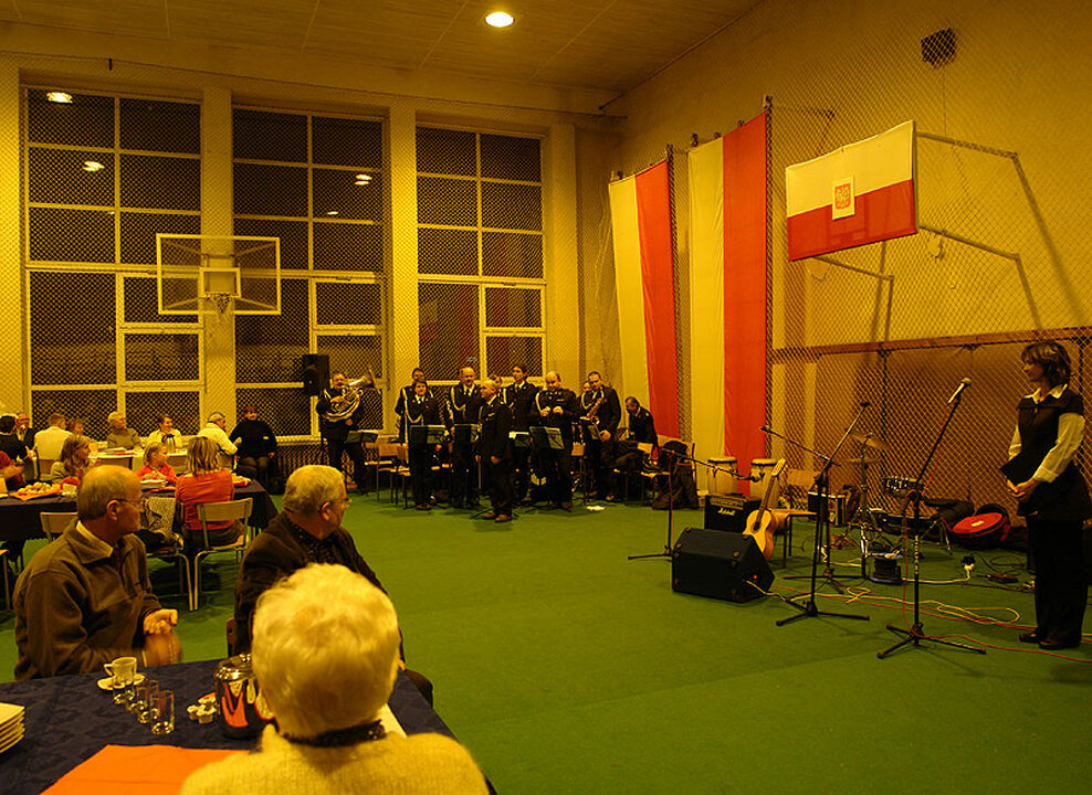 Dalsze uroczystości zostały przeniesione do hali sportowej w Zespole Szkół Morskich, gdzie odbyła się Muzyczna Biesiada Polaków. Rozpoczął ją koncert muzyki legionowej i patriotycznej, który dała Orkiestra Dęta ze Sławna pod batutą kapelmistrza Macieja Poprawskiego. W raz z orkiestrą swoje umiejętności zaprezentowały marżonetki.