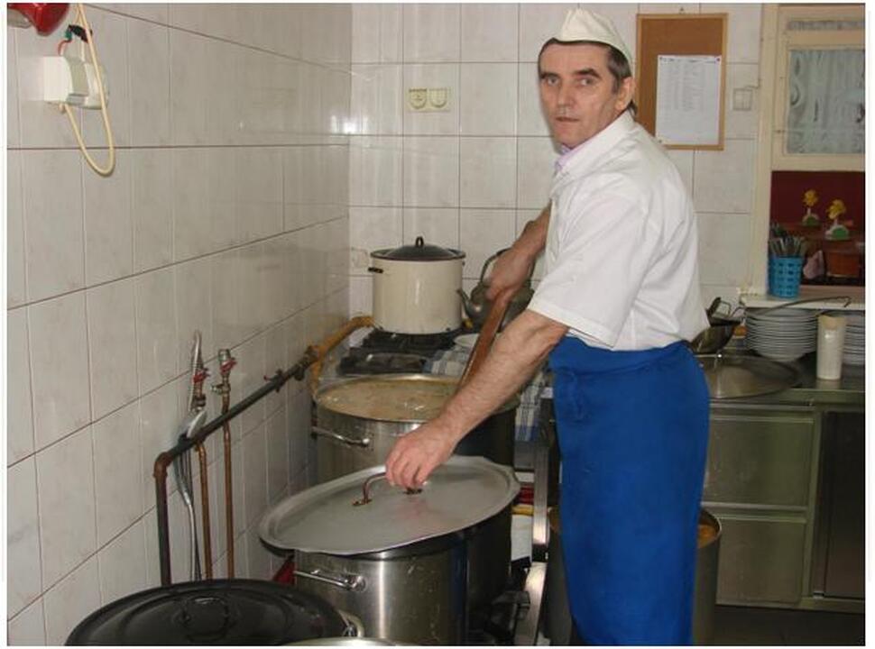 Niezbędne są taboret gazowy dwupalnikowy, garnki ze stali nierdzewnej, każdy o pojemności 100 litrów i wiele innych urządzeń. Gdy gotuje się jarzynową - to do tych garów jednorazowo trafia między innymi 40 kg ziemniaków, 10 kg włoszczyzny, 8 kg brokułów. By zrobić kapuśniak potrzeba minimum 15 kg kapusty kiszonej, soli też nie odmierza tu nikt łyżkami.
