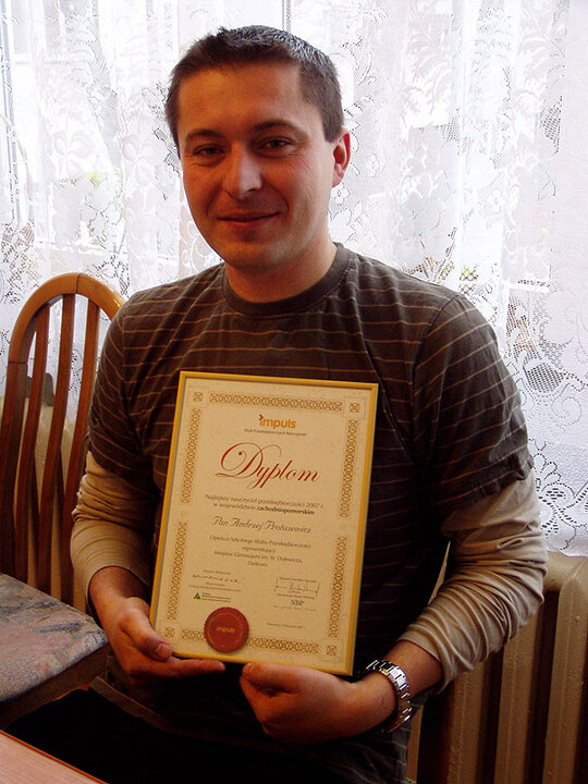 Andrzej Protasewicz – młody nauczyciel historii w Miejskim Gimnazjum im. Stanisława Dulewicza w Darłowie ukończył niedawno w Uniwersytecie Gdańskim podyplomowe studium nauczania przedsiębiorczości. Niestety program nauczania dla gimnazjów nie przewiduje nauki takiego przedmiotu. Aby jednak wykorzystać swoje dodatkowe umiejętności Andrzej Protasewicz założył kilkunastoosobowy Szkolny Klub Przedsiębiorczości. Edukował w nim młodych kandydatów na finansistów. Teraz potrafią oni czytać notowania giełdowe, wiedzą co to są akcje, obligacje, fundusze, kursy walut, aktywa, rentowność itp. Potrafią brać kredyty i wirtualnie inwestować. Młodzi ekonomiści mają rozbudzoną wyobraźnię, są pomysłowi i zamierzają w przyszłości zająć się biznesem. Po zapoznaniu się z podstawami ekonomii, finansów i przedsiębiorczości członkowie klubu przystąpili do ogólnopolskiego konkursu. Po trzech miesiącach operacji finansowych ich czysty zysk od kapitału 100 tys. zł wyniósł 9 tysięcy zł. Dało to im miejsce w pierwszej pięćdziesiątce najbardziej przedsiębiorczych klubów na Pomorzu. Doceniła to Fundacja Młodzieżowej Przedsiębiorczości i Narodowy Bank Polski, którzy przyznali Andrzejowi Protasewiczowi, opiekunowi Szkolnego Klubu Przedsiębiorczości tytuł i dyplom „Najlepszego nauczyciela przedsiębiorczości w województwie zachodniopomorskim”. Szkolny Klub otrzymał Certyfikat Inwestora, który zdobył w IV edycji konkursu pod nazwą „Moje finanse z klasy do kasy”. Mistrz przedsiębiorczości opiekuje się również redakcją szkolnego wydawnictwa pt. „Gazetka Edka”.LW