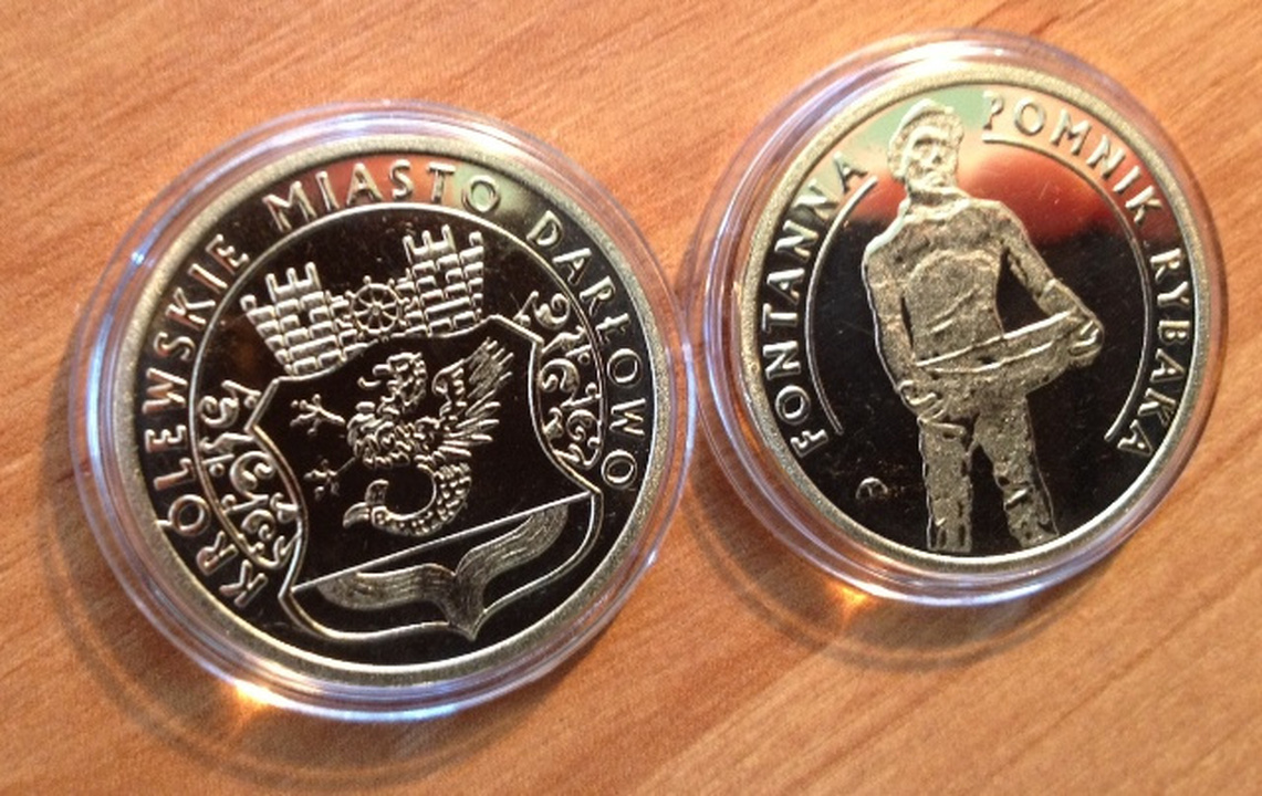 Każdy turysta odwiedzając nadmorskie Darłowo zabierał ze sobą zazwyczaj muszelkę czy bryłkę bursztynu. Pamiątki przywołują wspomnienia, można się nimi również pochwalić znajomym. Od niedawna w Darłowie można zakupić wyjątkową pamiątkę. Jest nią medal wykonany w Mennicy Śląskiej ze stopu nordic gold (nordyckie złoto). W Polsce jest używany do produkcji okolicznościowych monet dwuzłotowych, a w Europie do wybijania euro centów (10, 20, 50). Jest to stop miedzi z dodatkiem 5% cynku, 5% aluminium i 1% cyny. Na awersie widnieje Fontanna Pomnik Rybaka, na rewersie Herb Królewskiego Miasta Darłowo.