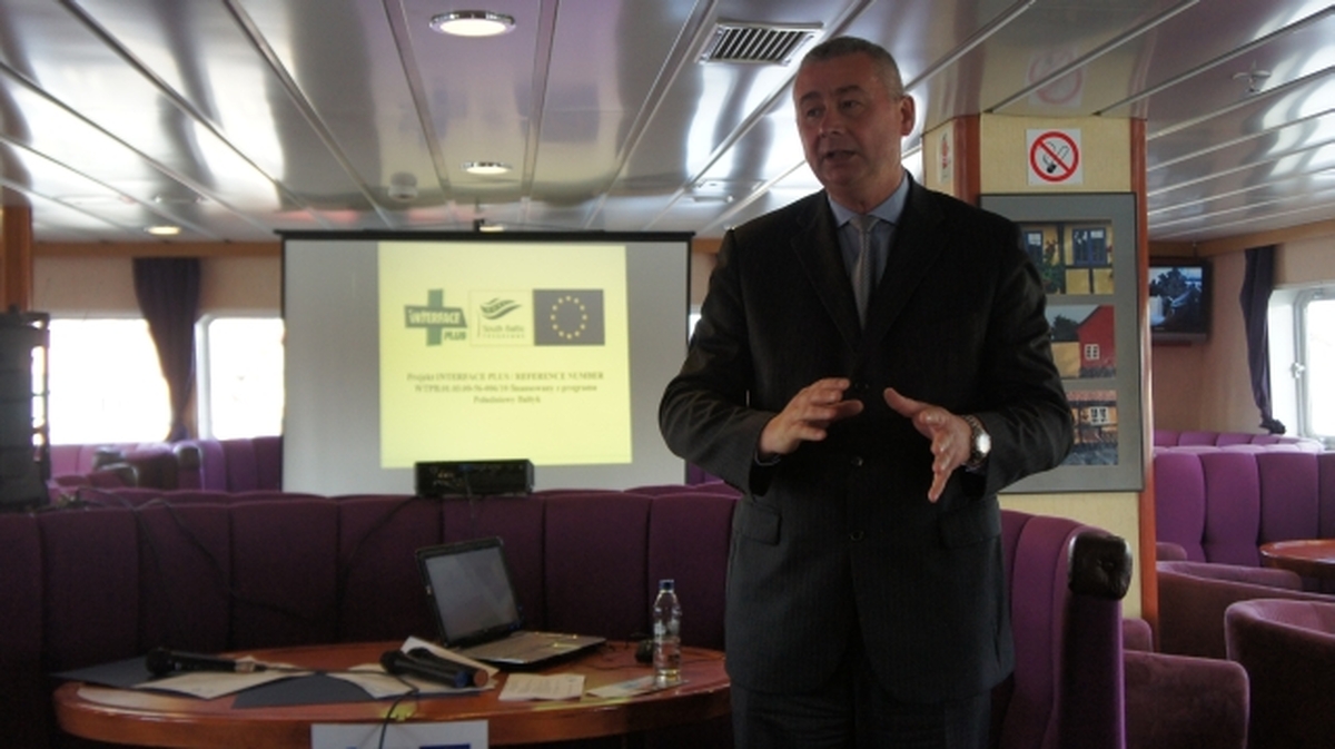 Bartłomiej Kruk (referat inwestycji i integracji europejskiej - Miasto Darłowo) nt. założeń w.w projektu INTERFACE PLUS.