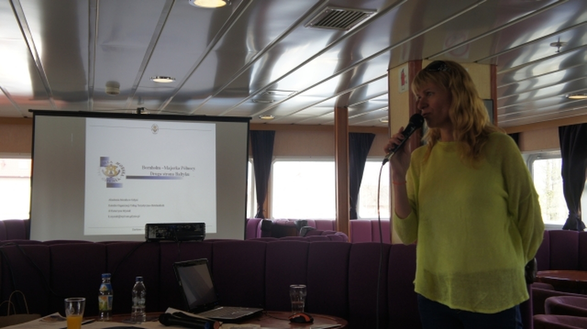 Dr Katarzyna Mysiak (Akademia Morska w Gdyni) nt. nowego produktu turystycznego: Bornholm - druga strona Bałtyku. Prezentacja zwracała szczególną uwagę na promocję naszego regionu, produktu regionalnego, jak również wzorców i doświadczeń jakie możemy czerpać ze strony duńskiej.