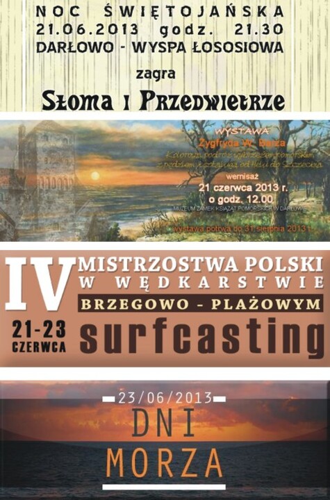 Już dzisiaj w Darłowie Noc Świętojańska, niecodzienne widowisko, które z roku na rok przyciąga coraz szerszą rzeszę widzów. Noc Kupały, bo tak dawniej nazywano noc świętojańską, święto letniego przesilenia słonecznego nabierze niecodziennego wymairu. Podczas koncertu Słoma i Przedwietrze (przyp. 21:30 - Wyspa Łososiowa) na rzece Wieprzy odbędą się rekonstrukcje dawnych obrzędów związanych z tym wydarzeniem, miedzy innymi palenie ognisk, puszczanie wianków, lampionów oraz palenie słomianego chochoła.