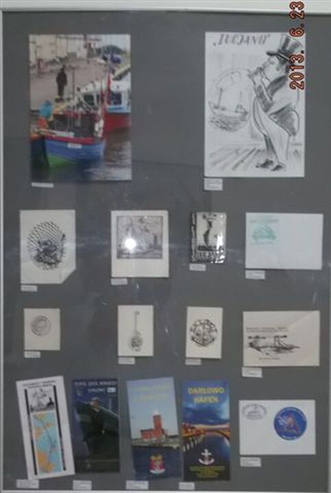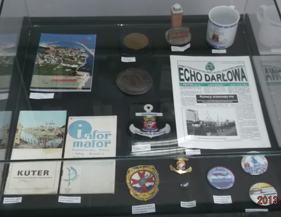 Możemy na niej obejrzeć m.in.: autentyczne kompasy, chronometry, kleszczki (narzędzia do wykonywania i naprawy sieci rybackich), bobiny, książeczki żeglarskie, dyplomy, zdjęcia i obrazy ludzi morza, proporczyki i foldery o tematyce morskiej, medale, odznaki, modele statków, okrętów i kutra rakietowego ORP Darłowo. Eksponowane zbiory dotyczą m.in.: Sieciarni, Przedsiębiorstwa Połowów i Usług Rybackich „Kuter”, Kapitanatu Portu, Latarni Morskiej, Zespołu Szkół Morskich, Zarządu Portu Morskiego Darłowo. Wystawa została z organizowana przez Darłowski Ośrodek kultury w oparciu o dary i wypożyczenia pamiątek następujących ludzi morza związanych z Darłowem: Maria Jarkowska, Paulina Fleicht, Magdalena i Danuta Augustyniak, Tomasz Bobin, Jerzy Surowiec, Patryk Makarewicz, Leszek Walkiewicz, Bogdan Nosowski, Artur Hamerling, Stanisław Świątkowski, Robert Szczepański. Wstęp wolny. w czasie trwanie wystawy prezentowany jest film o tematyce morskiej związany z Darłowem. Wystawa Morskie Darłowo stanowi zalążek przyszłej Izby Pamiątek Morskich. Wystawa będzie czynna do 27 czerwca. Po niej w sobotę 29 czerwca nastąpi otwarcie wystawy „Sztuka Marynistyczna” ze zbiorów założyciela Towarzystwa Przyjaciół Ziemi Darłowskiej – Marka Żukowskiego.