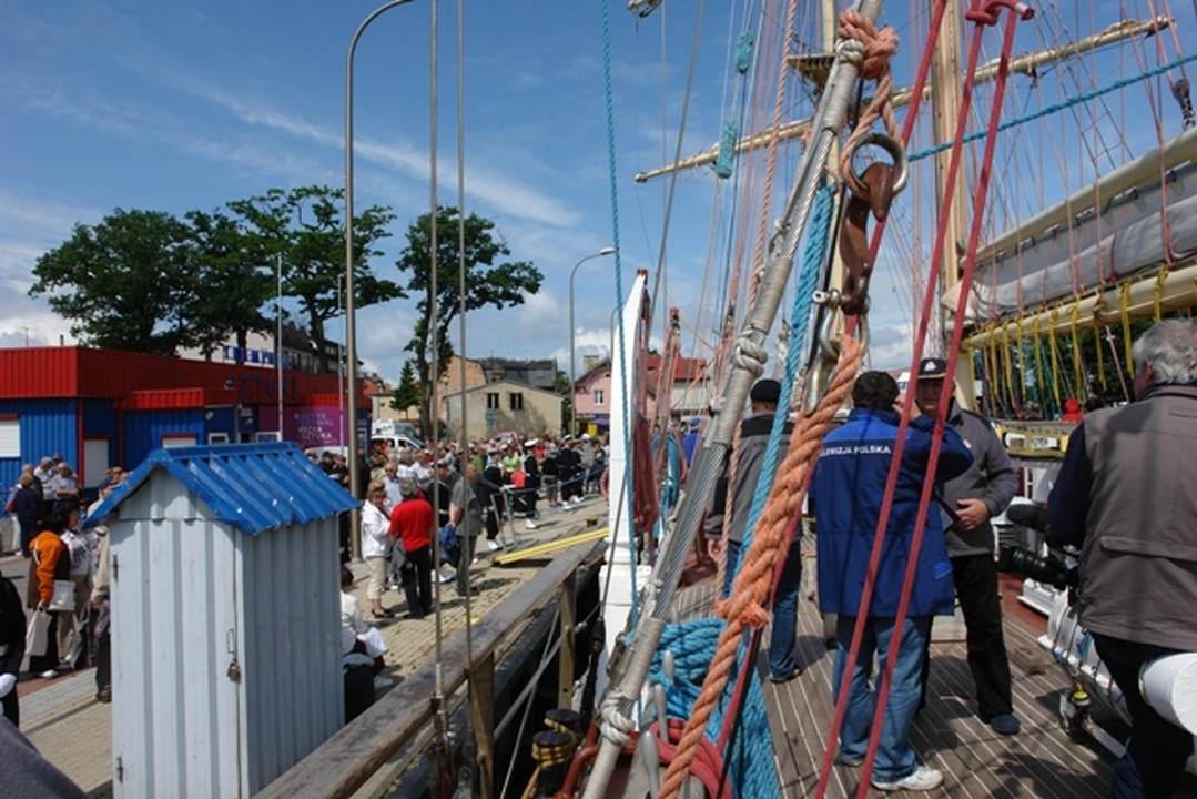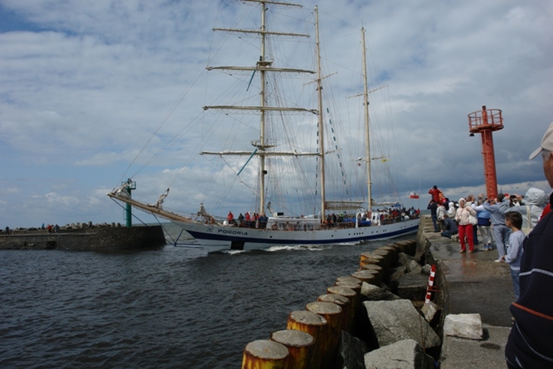 Tłumy darłowian i turystów oczekiwały na stojący na redzie legendarny żaglowiec „Pogoria”.