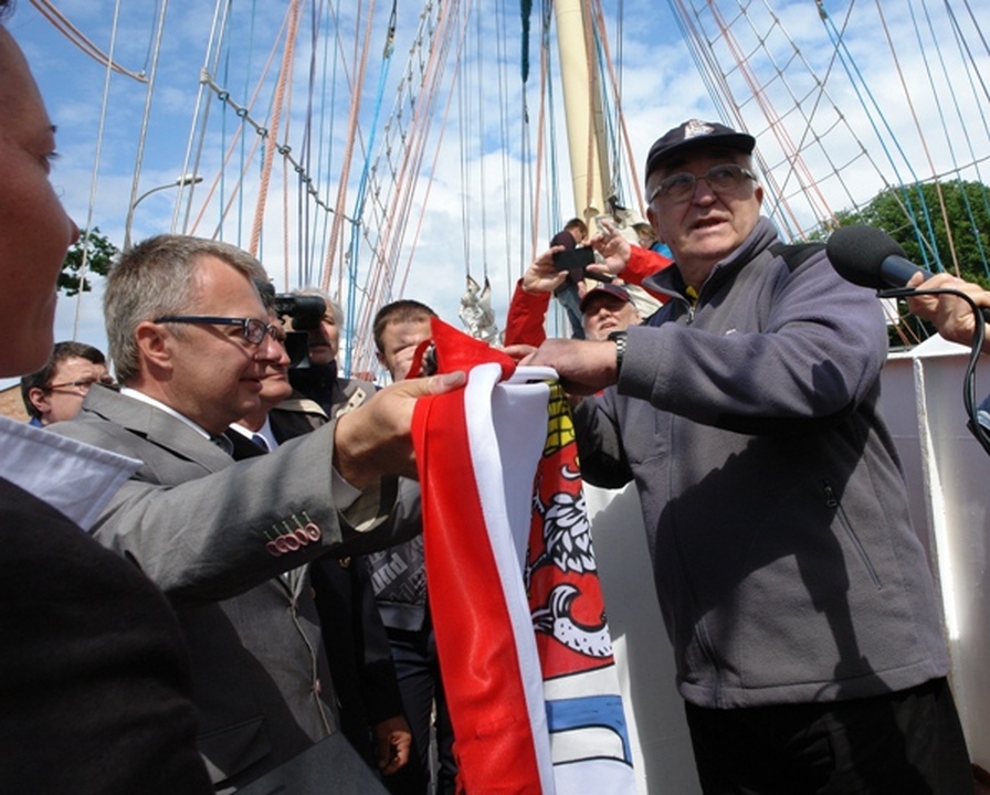 Tuż po godzinie jedenastej 27 czerwca 2013 trójmasztowa barkentyna s/y „Pogoria” zacumowała w porcie Darłowo na honorowym nabrzeżu przed Terminalem Sztuki. Goraco witali żeglarzy uczniowie ZSM i orkiestra dęta. Pierwsi na pokład żaglowca weszli Arkadiusz Klimowicz – burmistrz miasta Darłowa, Waldemar Śmigielski – dyrektor Zarządu Portu Morskiego Darłowo i Magdalena Burduk szefowa referatu promocji w UM. Włodarz miasta przekazał kapitanowi żeglugi wielkiej Maciejowi Leśnemu flagę miasta Darłowa i medal z herbem grodu. W kapitańskiej mesie kaphornowiec i zarazem dowódca żaglowca opowiedział o szkoleniowym rejsie z Bremenhaven do Gdyni, w którym udział wzięło 49 żeglarzy razem z kadrą. Zbudowany w 1980 r. żaglowiec o długości całkowitej 46,8 m, szerokości - 8 m i zanurzeniu 3,8 m nosi 15 żagli o łącznej powierzchni 909 m2. Po powitaniu burmistrz miasta zaprosił załogę żaglowca na śniadanie, po którym udostępniono żaglowiec do zwiedzania. Z Darłowa na Hel Pogoria wyruszy jutro.
