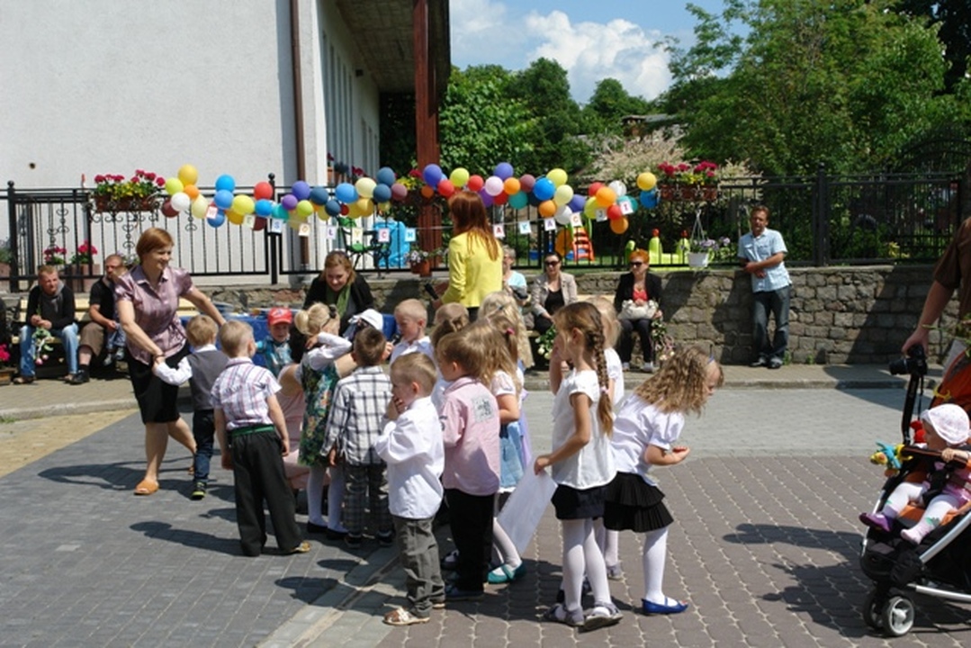 Zaczynaliśmy przed dziesięcioma miesiącami z dwunastką dzieciaków. Teraz uczęszcza ich 66 - mówiła Patrycja Walków dyrektorka tej szybko rozwijającej się placówki oświatowej. Z okazji zakończenia roku starszaki zaprezentowały program artystyczny. Wszystkie dzieci otrzymały pamiątkowe dyplomy i książeczki. Niektóre dzieci dostały dodatkowe nagrody n.p.: za zbieranie makulatury.
