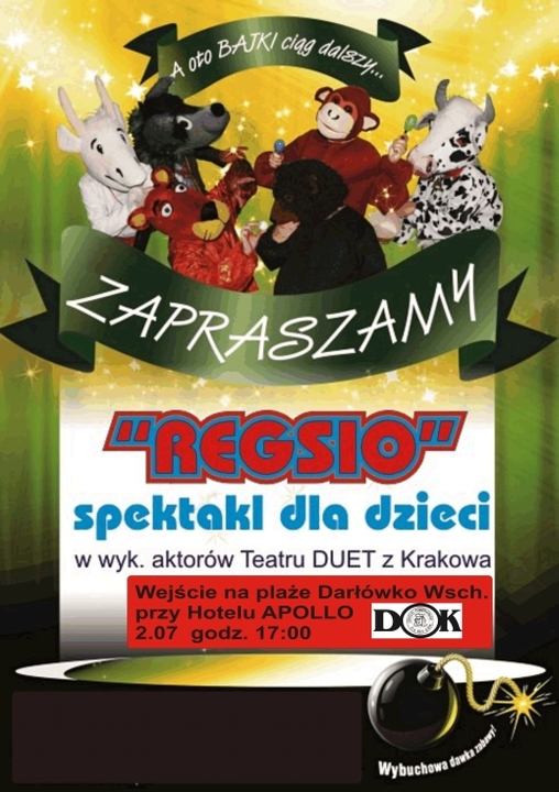 Spektakl "Regsio", który zostanie przedstawiony to bajkowa historia o przyjaźni pomiędzy mieszkańcami podwórka: psem, kotem i kurą, którzy wspólnie przeciwstawiają się przebiegłemu i fałszywemu lisowi.