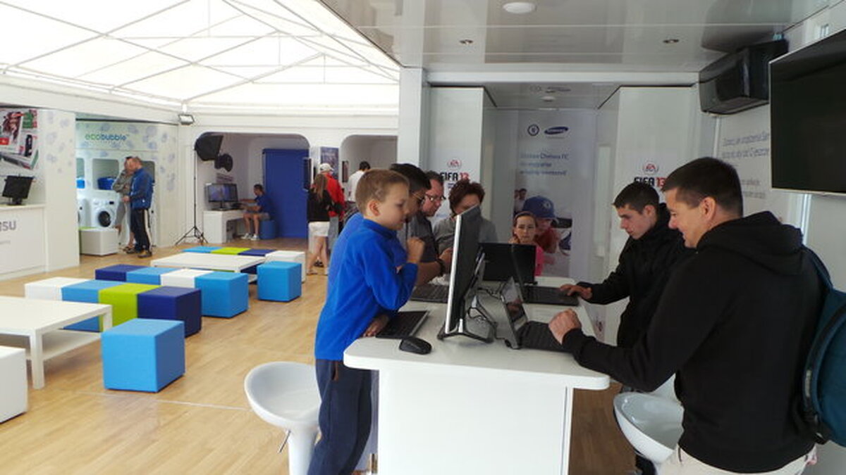 Nie trzeba być graczem, żeby wrócić do domu z zestawem gadżetów Chelsea FC. Wystarczy przyjść do Przystanku Samsung, zostawić swój adres e-mail i odebrać unikalny kod promocyjny. Każdy, kto zakupi produkty Samsung za minimum 1000 zł i zarejestruje się na stronie www.chelseafc.samsung.pl otrzyma zestaw gadżetów jednego z największych europejskich klubów piłkarskich.