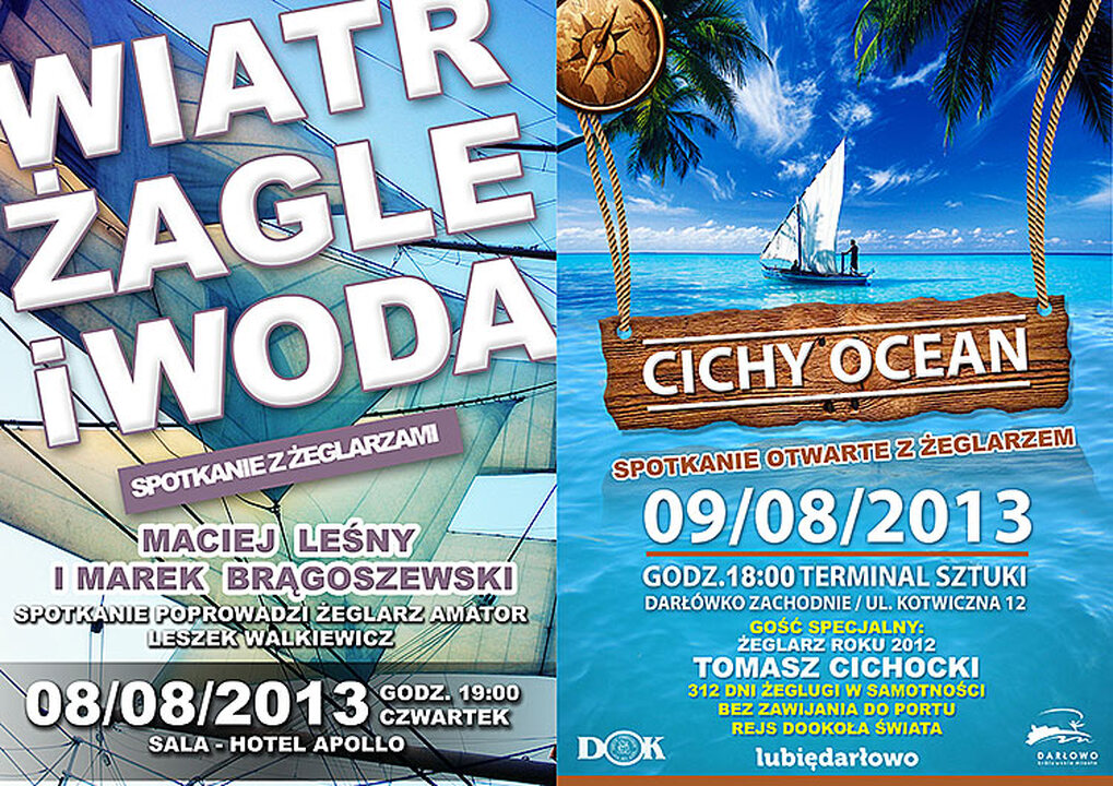 Cichy Ocean: Otwarte spotkanie z Żeglarzem Roku 2012 - Tomaszem Cichockim. 9 sierpnia 2013 - godz. 18:00 - Darłówko Zachodnie, ul. Kotwiczna 12. Terminal Sztuki - wstęp wolny.