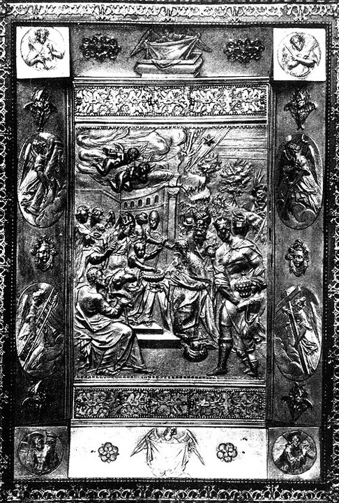 W gotyckiej kaplicy w Zamku Książąt Pomorskich w Darłowie urządzonej przez księżnę Elżbietę, wdowę po ostatnim księciu Pomorza Zachodniego Bogusławie XIV najwspanialszym dziełem czarującym oczy był tzw. „Srebrny Darłowski Ołtarz” wykonany w formie tryptyku. W skład Ołtarza wchodziło 27 srebrnych plakiet umieszczonych w architektonicznej obudowie pokrytej hebanem, dwa ruchome malowane obustronnie skrzydła oraz alabastrowe figury apostołów. Główną treścią ołtarza było odkupienie ludzkości przez mękę i śmierć Chrystusa. Srebrne plakiety były rozmieszczone w dwóch kondygnacjach i w zwieńczeniu. Na cokole – predellii w wydzielonym polu środkowym znajdowała się plakieta ze sceną Chrztu w Jordanie, po bokach w dwóch rzędach po sześć z każdej strony mniejsze plakiety z przedstawieniami świętych: Bartłomieja, Tomasza, Macieja, Szymona, Mateusza, Tadeusza Judy, Filipa, Andrzeja, Jana, Jakuba Starszego, Jakuba Młodszego i Piotra. Na cokole opierała się część właściwa ołtarza z umieszczoną w centrum kompozycji płytą z Pokłonem Trzech Króli. Wokół niej ułożono 12 mniejszych prostokątnych plakiet ze scenami z Pasji od górnego lewego narożnika zgodnie ze wskazówkami zegara: Ostatnia Wieczerza, Chrystus w Ogrójcu, Pojmanie, Chrystus przed Kajfaszem, Chrystus przed Herodem, Biczowanie, Koronowanie cierniem Ecce Homo, Niesienie Krzyża, Ukrzyżowanie, Złożenie do grobu, Zmartwychwstanie. W zwieńczeniu umieszczono plakietę przedstawiającą króla Dawida grającego na harfie. Plakiety zamocowano w dębowe ramy pokryte hebanem i zdobione motywem „wody”. Centralna plakieta z Pokłonem Trzech Króli posiadała dodatkowo ramę srebrną z nakładanymi medalionami z symbolami męki Chrystusa i ażurową koronką.