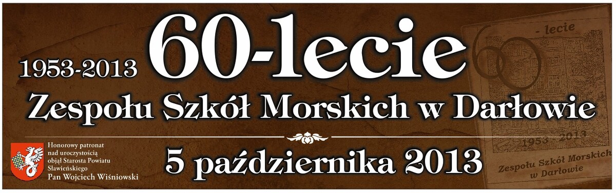 W sobotę 5 października odbędą się uroczyste obchody sześćdziesięciolecia Zespołu Szkół Morskich w Darłowie. Już na godzinę 9.30 dyrekcja ZSM zaprasza do budynku szkoły Absolwentów i prosi o wpisywanie się do księgi pamiątkowej Przy tej okazji Absolwenci otrzymają okolicznościowe znaczki, upominki oraz identyfikatory.