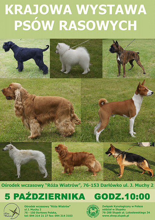 W sobotę, 5 października serdecznie zapraszamy do Ośrodka Wczasowego - Róża Wiatrów w Darłówku Zachodnim (ul. J. Muchy 2), na Krajową Wystawę Psów Rasowych.