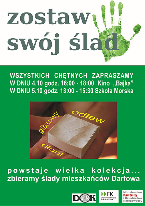 Wszystko w ramach Zachodniopomorskiego Forum Kultury,  w którym bierze udział darłowska placówka. Specjalne odlewy gipsowe, na których mają zostać zachowane odciski mieszkańców Darłowa, złożone zostaną w specjalnej skrzyni. Następnie efekt pracy zaprezentowany zostanie w 12 miejscowościach, które również biorą  udział w projekcie.