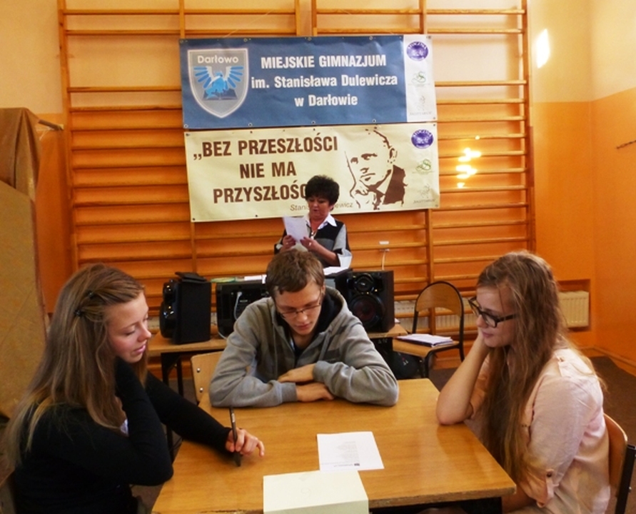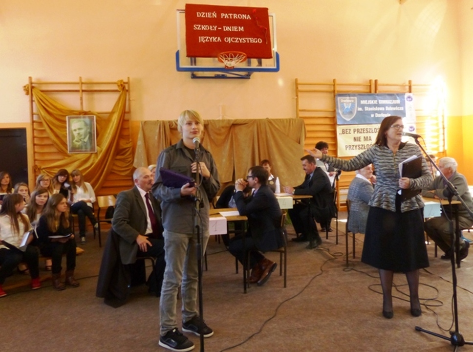 W sali gimnastycznej Miejskiego Gimnazjum im. Stanisława Dulewicza 4 października obchodzono Dzień Patrona szkoły w ramach ogólnopolskiego projektu: „Ojczysty dodaj do ulubionych.
