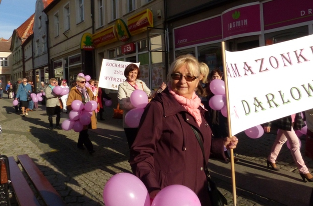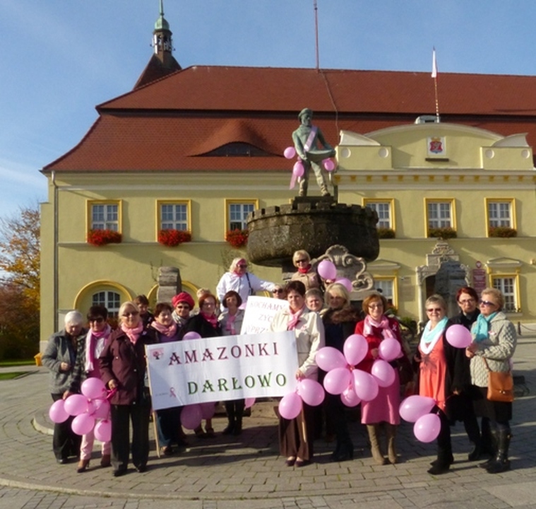 Ubrane na różowo z różowymi wstążeczkami i takiego samego koloru balonikami 25 października zebrały się na darłowskim rynku po Rybakiem darłowskie Amazonki, które w ten sposób przypomniały społeczeństwu, że październik to miesiąc świadomości raka piersi. Rak piersi jest najczęściej występującym nowotworem złośliwym u kobiet. Co roku ok. 14 tys. Polek dowiaduje się, że są chore na raka piersi. Znanych jest kilka typów tego nowotworu. Każdy z tych nowotworów jest inny. Wiedzę o typie raka piersi, na jaki choruje kobieta, jest kluczowa dla wyboru odpowiedniego leczenia oraz zwiększa szanse a wyleczenie. Różowe wstążeczki są znakiem poparcia dla kampanii „Przyjaciele od Piersi” i symbolem walki z ta chorobą. Z pod ratusza Amazonki przeszły ulicą Powstańców Warszawskich i następnie udały się do kawiarni "Kiki riki".