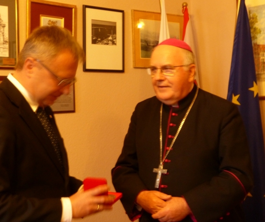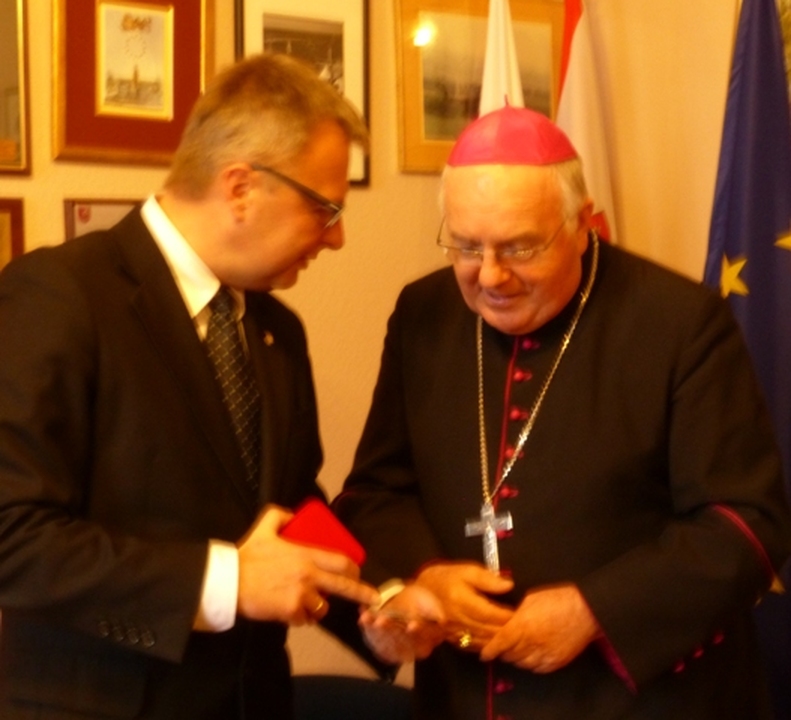 Burmistrz miasta Darłowa Arkadiusz Klimowicz gościł w ratuszu 4 listopada Biskupa Pomocniczego Diecezji Koszalińsko- Kołobrzeskiej Pawła Cieślika. Z tej okazji włodarz Darłowa wręczył JE medal wybity dla uświetnienia jubileuszu siedemsetlecia drugiej lokacji miasta. Oprócz wizyty w ratuszu Biskup odwiedził darłowskie szkoły, gdzie spotykał się z gronem pedagogicznym, dziećmi i młodzieżą. Biskup Paweł Cieślik urodził się w lipcu 1940 r. w Czernicach na ziemi złotowskiej. Święcenia kapłańskie przyjął 21 czerwca 1964 r. w rodzinnym Zakrzewie. W latach 1993-1994 był Rektorem Wyższego Seminarium Duchownego w Szczecinie. Biskupem został mianowany 3 grudnia 1994 i konsekrowany na biskupa 6 stycznia 1995 w Rzymie przez Ojca Świętego Jana Pawła II.