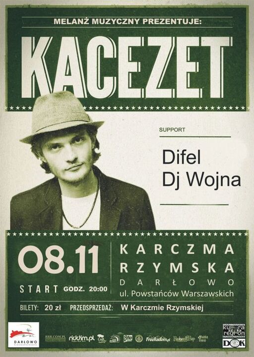 Wraz z Kacezetem wystąpi, znany już darłowskiej widowni - Dj WOJNA (grał niedawno z Bob Onem) oraz raper DIFEL