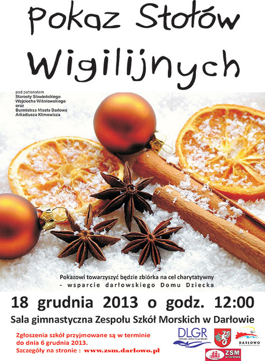 Zapraszamy - sala gimnastyczna Zespołu Szkół Morskich w Darłowie (ul. Szpitalna 1) - 18 grudnia 2013, start 12:00. Wstęp wolny.