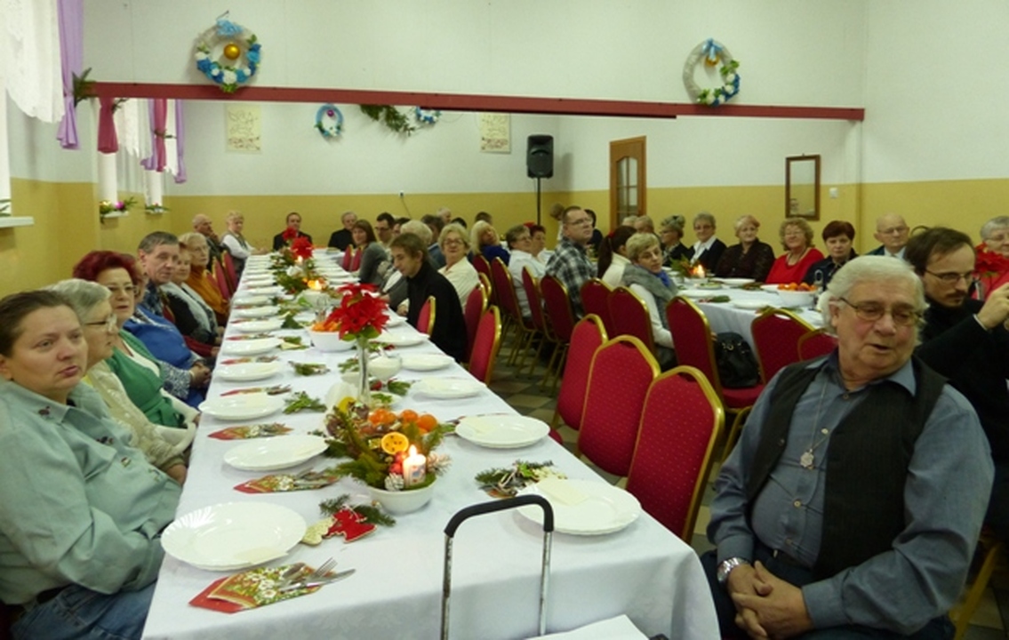 Spotkanie zainaugurował specjalnie przygotowany na tę okoliczność występ dzieci ze Świetlicy Środowiskowej „Bezpieczna Przystań” przygotowany pod kierunkiem oraz Marioli Ozdoby i Moniki Lesner. Śpiewano kolędy i opowiadano o ludowych zwyczajach bożonarodzeniowych i noworocznych. Wystąpił także „człowiek orkiestra” – Jan Schwarzlose, który grając na akordeonie, śpiewając i dyrygując spowodował, że wszyscy śpiewali kolędy niczym w zgranym chórze. Łamano się opłatkiem, składano życzenia i spożywano pyszne potrawy wigilijne: pierogi z kapustą i grzybami, kluski z makiem, kapustę z grochem, śledzie, a także owoce i ciasta.