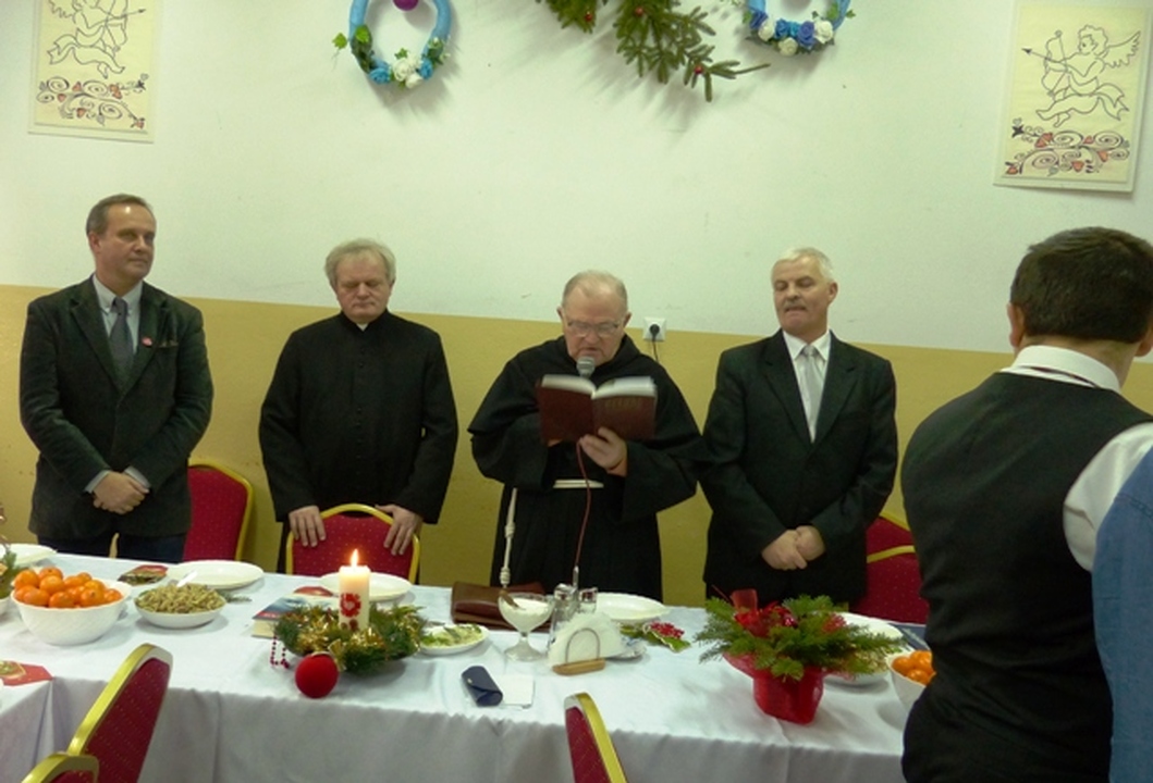 Przy wspólnym świątecznym stole zasiedli członkowie grupy wsparcia „Niezapominajka” i Stowarzyszenia Na Rzecz Osób Zagrożonych Wykluczeniem Społecznym o nazwie „Otwarte Drzwi”. Obie te działające przy MOPS-ie organizacje skupiają część osób niepełnosprawnych i część osób starszych z terenu miasta Darłowa i zajmują się rozwijaniem oraz propagowaniem postaw, inicjatyw i działań zmniejszających zagrożenie wykluczenia społecznego. W spotkaniu uczestniczyli m.in.: Waldemar Wieczorek - kierownik MOPS, Zbigniew Mielczarski – kierownik referatu oświaty i spraw społecznych w UM, proboszcz Parafii Św. Gertrudy – Eugeniusz Gnibba, wikariusz klasztoru Franciszkanów o Stefan Malandy, Arkadiusz Sip – dyrektor DOK im. L. Tyrmanda, prezes PZERiI i stowarzyszenia „Otwarte Drzwi” Danuta Puczyńska.