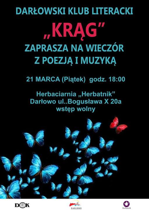 Z kolei o godz. 18:00, Darłowski Klub Literacki "Krąg" zaprasza do Herbatnika (ul. Bogusława X 20a) na wieczór z poezją i muzyką.