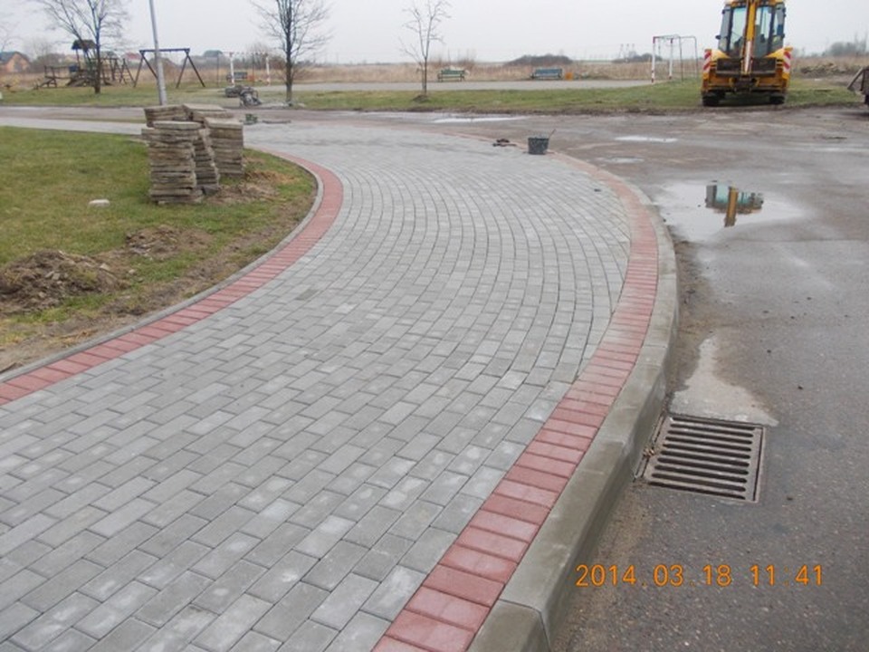 Powierzone zadanie wymiany chodnika zrealizował miejscowy Zakład Inżynieryjno Budowlany inż. Franciszka Dorosińskiego. Łączny koszt wykonywanych prac wyniósł niecałe 59 tys. złotych brutto. Prace zostały wykonane terminowo i dobrze jakościowo