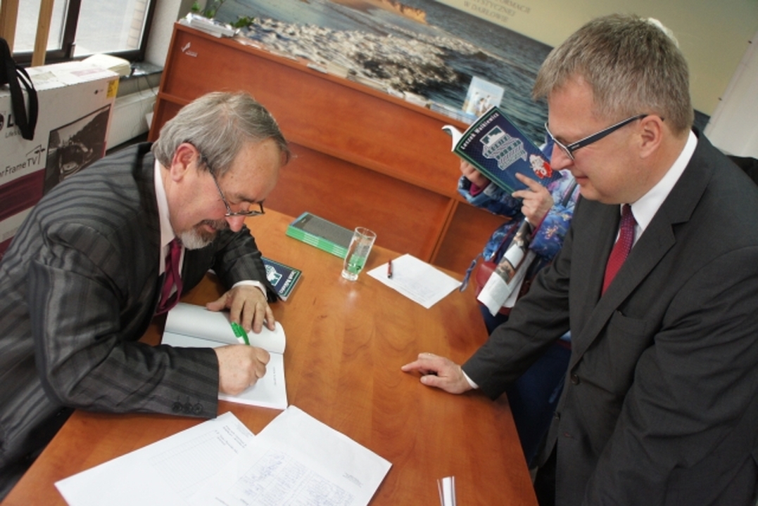 W dniu wczorajszym, 17 kwietnia b.r. o godz. 17 miała miejsca premiera najnowszej książki Leszka Walkiewicza (Towarzystwo Przyjaciół Ziemi Darłowskiej), pn. "Kronika Ziemi Darłowskiej". Na spotkanie w Darłowskim Centrum Obsługi Turystycznej (IT Darłowo, ul. Rynkowa 5) przybyli licznie zgromadzeni goście. Obecny był również Burmistrz Miasta Darłowo - Arkadiusz Klimowicz.