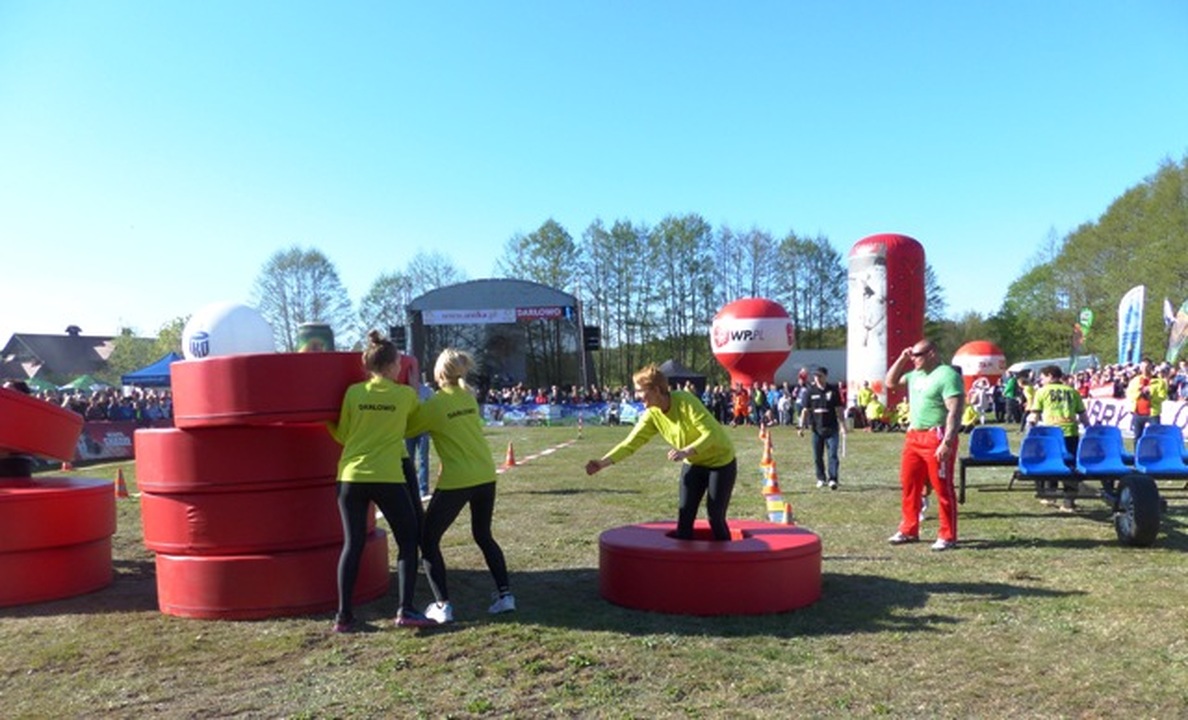 Po wspanialej rywalizacji obu reprezentacji Turniej Miast Darłowo kontra Ustka w Dolinie Charlotty zakończył się sukcesem obu miast. Drużynom przyznano dwa puchary W sobotę 3 maja przez kilka godzin w 7 konkurencjach turniejowych zmagało się 6 drużyn po trzy z Darłowa i Ustki. Byli to młodzieżowcy, kobiety i mężczyźni. Walczono na wspinaczkowej ścianie, rzucano piłki do wirujących koszy, przenoszono z podskokiem wielkie sześciany, rolowano w pierścieniowej obudowie zawodników. Rywalizowano na kole w ilości obrotów powietrznych pedałując na rowerze, oraz na podwieszanych szczudłach. Sytuacja w punktacji zmieniała się jak w kalejdoskopie. Naprzemian raz prowadzili Darłowianie a następnie Ustczanie.Ostatecznie w klasyfikacji punktowej 63 do 60 pierwszy Turniej Miast wygrała i zdobyła puchar Doliny Charlotty Ustka. Najlepsi w dopingu byli jednak Darłowianie i zdobyli puchar ufundowany przez właściciela Doliny Mirosława Wawrowskiego. Podczas turnieju oglądano pokazy akrobatyki i sztuk walki. Wicemistrz Świata Marcin Bugajewski pobił rekord Europy w skoku wzwyż na rowerze przeskakując poprzeczkę zawieszoną na wysokości 129 cm. Licznie zgromadzeni widzowie podziwiali wielokrotnego mistrza teakwondo i zawodnika kickboxingu Arkadiusza Homańczuka w pokazach sprawnościowych. Był to show oparte na formule światowego hitu „Wipeout”, a zarazem piknik rodzinny, który przyciągnął tłumy kibiców Rywalizacja dostarczyła widzom niezapomnianych wrażeń, oraz dużą porcję śmiechu podczas zmagań. Darłowską reprezentację wspomagali: król Eryk zawodnicy Orlika, Morsacy, emeryci i czirliderki ze Słupska. Obydwa rywalizujące miasta zyskały na promocji.