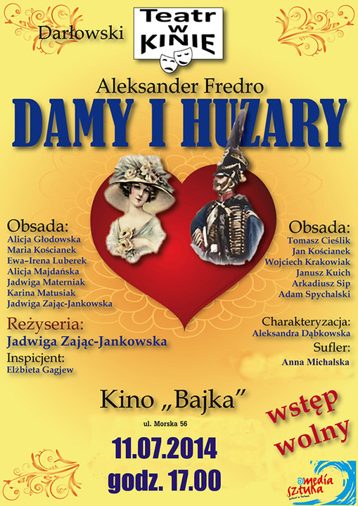 „Damy i Huzary" - komedia Aleksandra Fredry, spektakl darłowskiego amatorskiego „Teatru w kinie" w reżyserii Jadwigi Zając - Jankowskiej.
