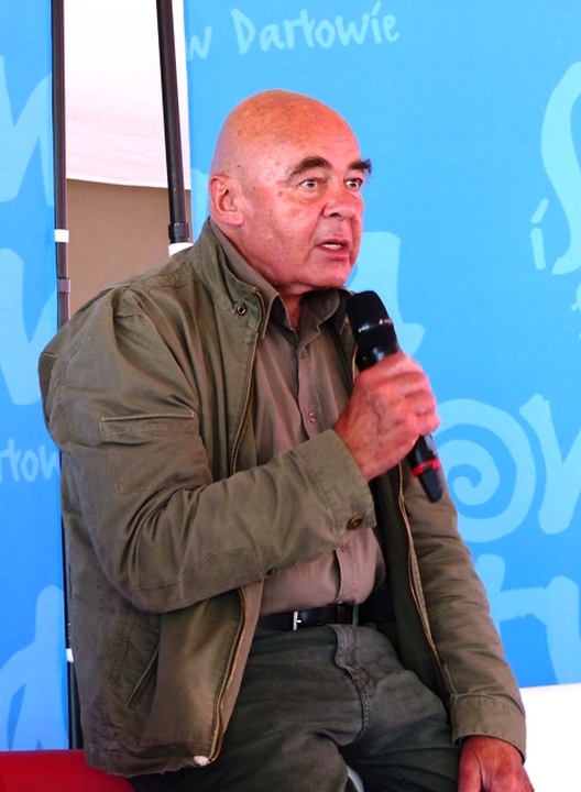 Tuż po otwarciu miało miejsce spotkanie z aktorem, satyrykiem i felietonistą Stanisławem Tymem zatytułowane „Pies czyli kot”. Spotkanie poprowadzili Ewa Winnicka i Henryk Sawka. Aktor filmowy i teatralny, reżyser, scenarzysta oraz satyryk jak zawsze dowcipnie opowiadał o początkach swojej kariery w teatrze warszawskim STS, o występach kabaretowych, sztukach, skeczach i swoich satyrycznych tekstach, które wykonywali prawie wszyscy znani artyści polskich scen kabaretowych. Po spotkaniu Stanisław Tym podpisywał książkę pt. „Pies czyli Kot, która jest zbiorem jego felietonów z lat 1972- 2014 z rysunkami autora.