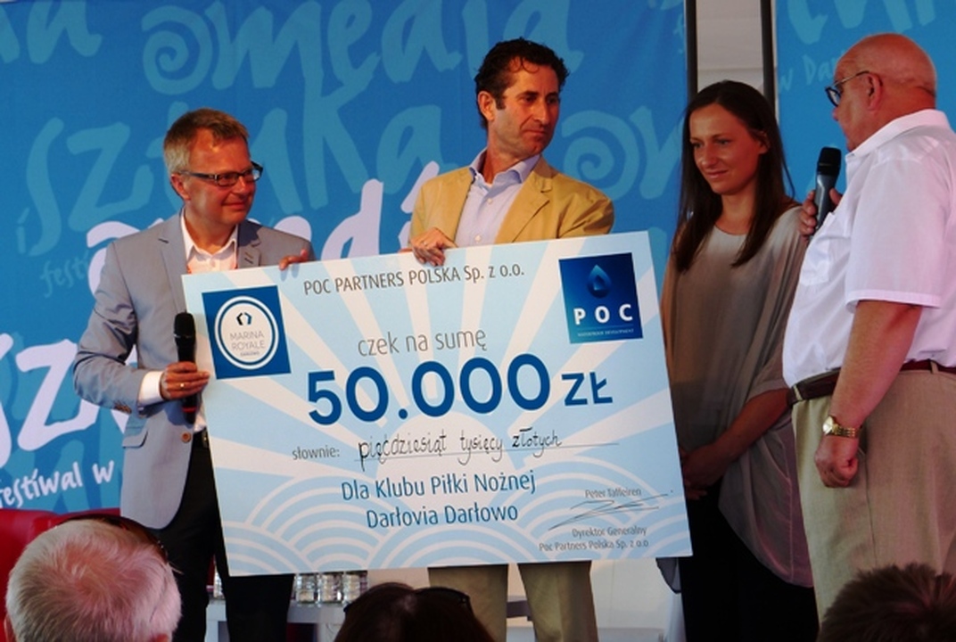 Pomiędzy spotkaniami belgijska spółka deweloperska POC Parntners przekazała Klubowi piłki nożnej Darłovia  czek na 50 tys. złj