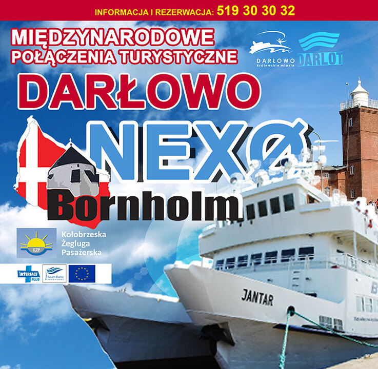 W trakcie pobytu w Darłowie i Darłówku każdy powinien poznać smak morskiej przygody odbywając rejs statkiem morskim. Jedną z takich propozycji jest rejs katamaranem Jantar - Kołobrzeskiej Żeglugi Pasażerskiej, który w sezonie letnim (w każdą letnią środę) połączeniem promowym spina dwa brzegi Bałtyku - porty w Darłowie i Nexo.