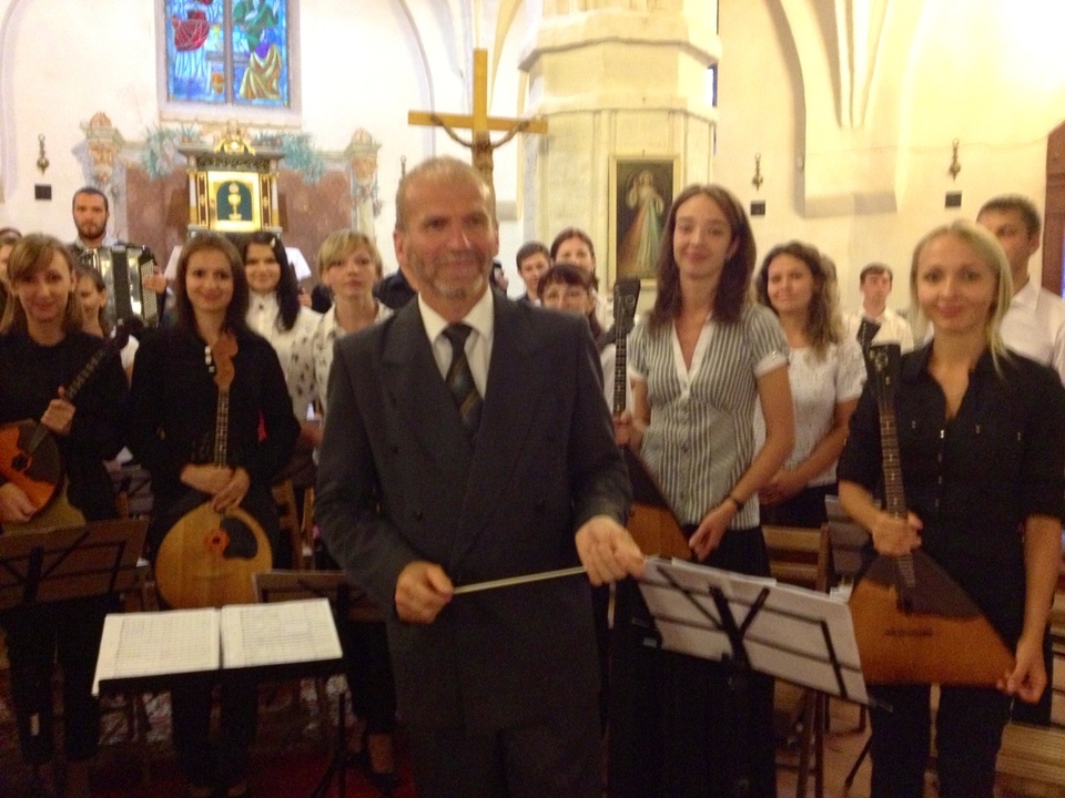 Dr hab. Witold Zaborny jest wykładowcą w Katedrze Organów i Muzyki Kościelnej w Akademii Muzycznej w Katowicach im. Karola Szymanowskiego. Koncertował i zdobywał laury na licznych konkursach i festiwalach organowych w Polsce i całej Europie. Posiada w swoim dorobku nagrania radiowe i telewizyjne. Melomani byli zachwyceni jego mistrzowskimi wykonaniami. Orkiestra Bałałajkowa Państwowego Uniwersytetu Kultury i Sztuki w Mińsku została utworzona w 1975 r.. Od 2003 zespołem kieruje Sergiusz Owodok. Orkiestra liczy 40 osób, wśród których są zarówno studenci Państwowego Uniwersytetu Kultury i Sztuki, jak i wykładowcy tejże uczelni. Orkiestra składa się z następujących grup: domry – małe, altowe, basowe (ogółem 17 wykonawców), bałałajki – prymy, sekundy, altowe, kontrabasowe (ogółem 9 wykonawców), flet, klarnet, akordeony guzikowe i klawiszowe oraz perkusja. Orkiestra ma w repertuarze ponad 150 utworów różnych, w różnych stylach i gatunkach muzycznych. Zespół prowadzi aktywną działalność koncertową, regularnie występując we wszystkich rejonach Republiki Białoruskiej, oraz na festiwalach międzynarodowych. W Darłowie oczarowali widzów swoją muzyką. Orkiestrą dyrygował Sergiusz Owodok, który jest absolwentem Białoruskiej Państwowej Akademii Muzycznej w Mińsku gdzie z wyróżnieniem ukończył dwa kierunki: dyrygentury orkiestrowej oraz akordeonu. W latach 1985-2000 wykładał w Państwowym Koledżu Muzycznym w Baranowiczach. W tym czasie zakłada kilka różnych orkiestr akordeonowych (na akordeony guzikowe, a także klawiszowe), orkiestrę rosyjskich instrumentów ludowych oraz orkiestrę symfoniczną. Jest wielokrotnym laureatem Ogólnokrajowych Konkursów Zespołów Orkiestrowych. Docent Sergiusz Owodok wykłada w Białoruskim Państwowym Uniwersytecie Kultury i Sztuki w Mińsku m.in.. dyrygenturę, transkrypcje orkiestrowe na różne instrumenty i aranżacje komputerowe. Koncert w Darłowie była prawdziwą ucztą muzyczną. Na zakończenie pięknie grzmiącej muzyki w murach średniowiecznej budowli sakralnej Arkadiusz Sip dyrektor DOK w imieniu publiczności wiązankami kwiatów gorąco podziękował artystom i wirtuozom muzyki organowej i bałałajkowej.