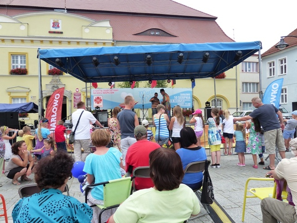 Na scenie przed ratuszem miały miejsce koncerty i występy solistów oraz licytacje darów przekazanych przez firmy i osoby prywatne. W trakcie festynu wystąpili: zwycięzcy konkursów na Młode Talenty Wokalne, Magik Julian oraz Zespoły: polsko- romski „Marianna i jej Cyganie” z Koszalina i folklorystyczny zespół „Złoty Łan” z Wiekowic. Duże zainteresowanie wzbudził koncert niewidomej wokalistki z Ustki Patrycji Baczyńskiej (finalistki Must Be The Music – tylko Muzyka), która swoim głęboko grzmiącym głosem wzbudziła podziw widzów. Kulminacyjnym występem w części artystycznej festynu była gra i śpiew zespołu samorządowców z Polanowa - "5S", który świetnie rozbawił publiczność. W festynie udział wzięli m.in. wolontariusze z darłowskiego oddziału Związku Emerytów Rencistów i Inwalidów na czele z Danutą Puczyńską oraz szkół, także pracownice hospicjum. W loterii fantowej wszystkie kupione losy były nagradzane drobnymi podarkami i gadżetami. Głównymi nagrodami były: rower, toster, patelnia do grillowania, rejs jachtem motorowym „Nicola”. Największe sumy uzyskano z licytacji: czterech lotniczych fotogramów Darłowa -450 zł, piłki z autografami klubu Zawisza Bydgoszcz - 350 zł, pluszowego misia podarowanego przez burmistrza Darłowa -350 zł. Powodzenie miały super smaczne jabłka, które starosta powiatu i przedstawiciele Darłowskiej Lokalnej Organizacji Turystycznej rozdawali wszystkim przybyłym na festyn w zamian za drobne datki na darłowskie hospicjum. Dochód z festynu zostanie przeznaczony zostanie na potrzeby hospicjum domowego, m.in. Samochód niezbędny do funkcjonowania hospicjum. Hospicjum domowe zostało uruchomione od 1 lipca 2014. Imprezę swoją obecnością zaszczycili: Wojciech Wiśniowski sławieński starosta i jego zastępca Andrzej Protasewicz, Arkadiusz Klimowicz – burmistrz Darłowa i jego zastępca Elżbieta Karlińska z rodzinami, radni Rady Miejskiej, księża, mieszkańcy i turyści. Na grillu pieczono kiełbaski i pstrągi, obok częstowano zupą, ciastami, lemoniadą, chlebem ze smalcem i ogórkiem w zamian za datki do puszek. Na festynie można było kupić miody naturalne, wyroby artystyczne mieszkańców hospicjum. Dzieci szeroko korzystały z malowania twarzy, udziału w konkursie plastycznym i z pompowanej zjeżdżalni. Do późnych godzin nocnych bawiono się przy muzyce. Patronat Honorowy nad festynem objęli: Burmistrz Miasta Darłowo Arkadiusz Klimowicz, Starosta Sławieński Wojciech Wiśniowski, Bp. Diecezji Koszalińsko – Kołobrzeskiej Edward Dajczak, Dyrektor Caritas Diecezji Koszalińsko – Kołobrzeskiej.