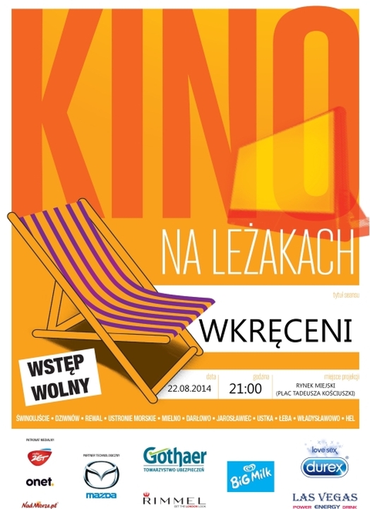 W Darłowie się dzieje a dowodem na to jest naszpikowany różnorodnymi wydarzeniami bogaty kalendarz imprez. Przed nami jeszcze tego lata - podczas tych wakacji - m.in. koncerty z klimatem w Kościele Mariackim, Święto Latarni Morskich, koncert bluesowy na deptaku w Darłówku Zachodnim, regaty żeglarskie o tytuł Mistrza Polski, Dzień Otwarty Lotniska w Darłowie, Ogólnopolskie Zawody Surfcastingowe – Darłowska Plaża 2014, Maraton Zumba, kilka spotkań artystycznych w Terminalu Sztuki a także dwukrotnie na rynku w Darłowie – kino na leżakach. W ramach niego dwa seanse. Pierwszy 22 sierpnia (godz. 21:00) z polską komedią w reżyserii Piotra Wereśniaka pt. „Wkręceni”, drugi 28 sierpnia (godz. 20:30), kiedy to będziemy mogli zobaczyć polską komedię kryminalną Sławomira Kryńskiego pt.: „Podejrzani zakochani”. Już dziś serdecznie zapraszamy. Darłowo – Rynek Miejski. Leżaki zarezerwowaliśmy dla mieszkańców i gości Miasta Darłowa.