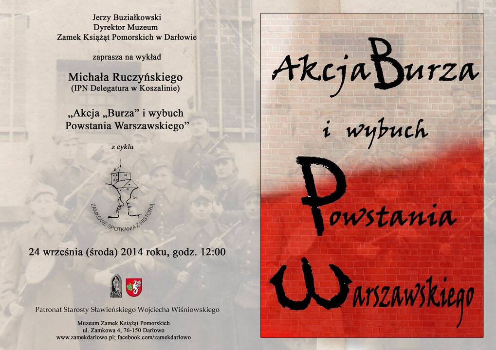 Jerzy Buziałkowski Dyrektor Muzeum Zamek Książąt Pomorskich w Darłowie zaprasza na wykład Michała Ruczyńskiego (IPN Delegatura w Koszalinie) "Akcja "Burza" i wybuch Powstania Warszawskiego" z cyklu "Zamkowe Spotkania z Historią".