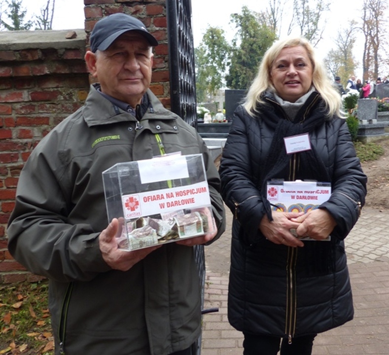 W dniu Wszystkich Świętych 1 listopada przy trzech bramach prowadzących na cmentarz przy Św. Gertrudzie, podobnie jak w latach poprzednich, kwestowali m.in. starosta sławieński – Wojciech Wiśniowski, burmistrz miasta Darłowa – Arkadiusz Klimowicz, zastępca burmistrza – Elżbieta Karlińska, sekretarz UM – Krzysztof Walków, ks. Krzysztof Sendecki, przewodniczący darłowskiej Rady Miejskiej Zbigniew Grosz, radni Rady Miejskiej i inni. Zebrano do puszek 16280 złotych. Jest to znacznie więcej aniżeli w roku ubiegłym. Datki zostaną przeznaczone na Dom Hospicyjno – Opiekuńczy Caritas w Darłowie im. Biskupa Czesława Domina, mającego swoja siedzibę w Darłowie przy ulicy Wiejskiej 9. Organizatorzy zbiórki dziękują darłowianom za hojność i zaangażowanie w zbiórkę.