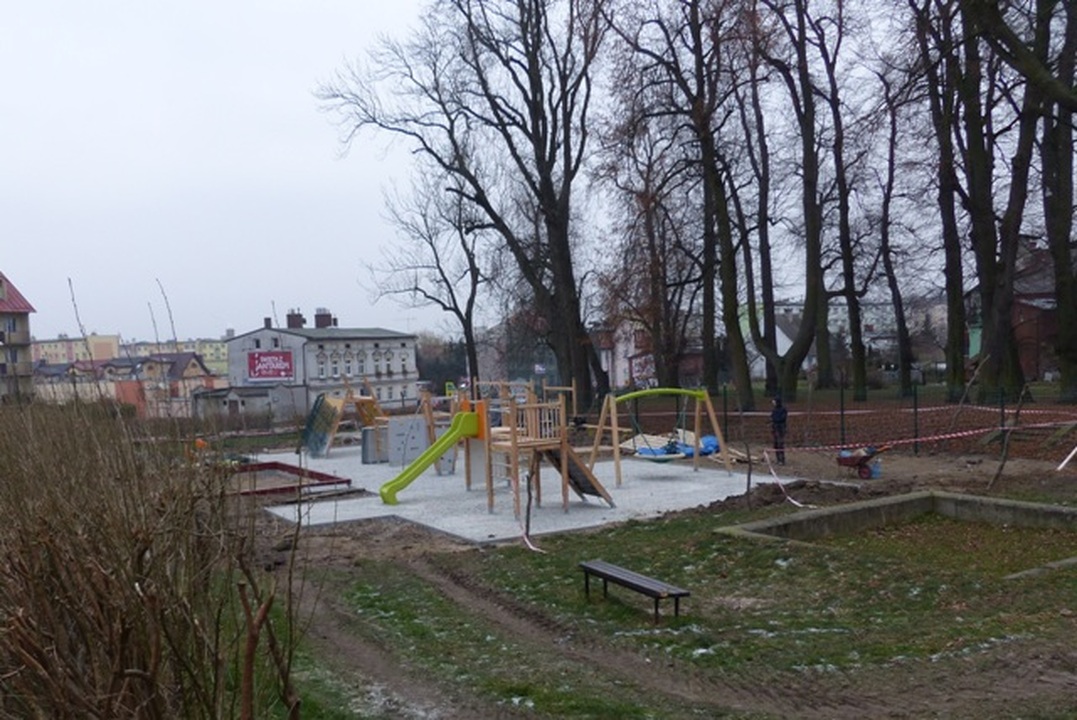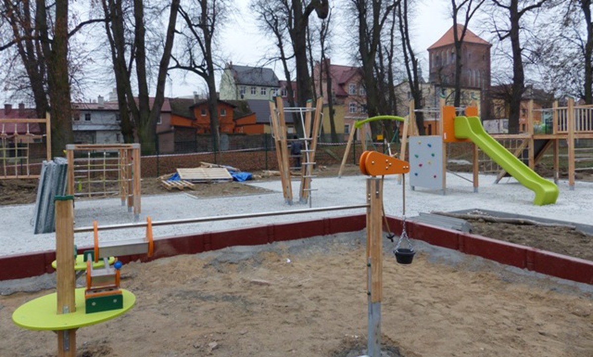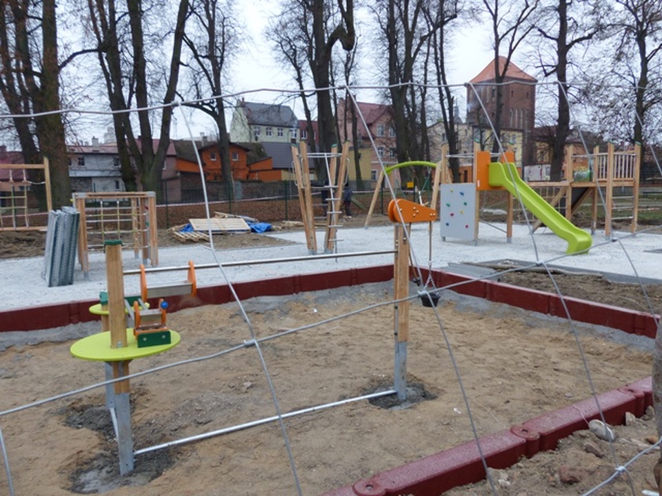 Również budowa placu zabaw w parku obok siedziby Darłowskiej Lokalnej Grupy Rybackiej przebiega zgodnie z planem. Montuje się już niektóre urządzenia zabawowe.