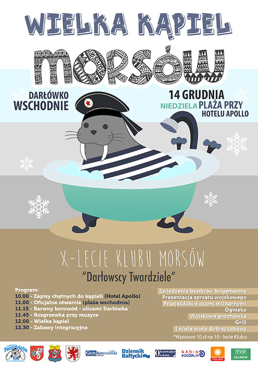 W tym tygodniu Darłowscy Twardziele - Klub Morsów z Darłowa będzie świętował swój Jubileusz 10-lecia istnienia. Z tej okazji członkowie Klubu przygotowali szereg atrakcji - z czego jedną z nich, będzie wspólna, Wielka Kąpiel Morsów - nie tylko tych z Darłowa ale także tych, które przybędą do Darłowa gościnnie na przyjęcie urodzinowe.