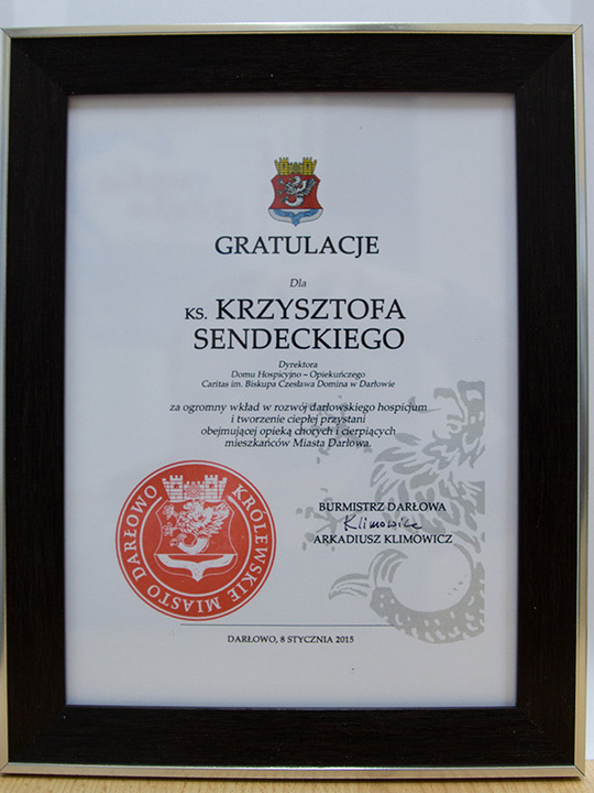 Dyrektor Domu Hospicyjno – Opiekuńczego Caritas im. Biskupa Czesława Domina w Darłowie.