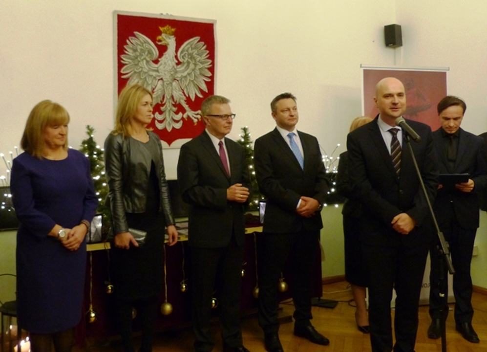 Na zaproszenie burmistrza do ratusza przybyli samorządowcy powiatu sławieńskiego oraz gminy i miasta Darłowo, duchowieństwo, przedsiębiorcy, bankowcy, dyrektorzy szkół i placówek oświatowych i kulturalnych, prezesi organizacji pozarządowych, szefowie służb mundurowych. Na wstępie do zgromadzonych przemówił Wojciech Wiśniowski starosta powiatu sławieńskiego dziękując mieszkańcom ziemi darłowskiej za oddanie głosów w niedawnych wyborach. W nowym roku życzył wszystkim przybyłym i ich rodzinom „zdrowia, zdrowia i jeszcze raz pieniędzy”. Do życzeń noworocznych dołączył się wójt gminy Darłowo Radosław Głażewski. Wyraził również nadzieję na dobrą współpracę władz miasta i gminy Darłowa dla dobra mieszkańców ziemi darłowskiej. Burmistrz Darłowa Arkadiusz Klimowicz na początku wystąpienia poinformował, że decyzją Rządu RP z dn. 7 stycznia br. utworzono Darłowską Podstrefę Ekonomiczną w ramach Specjalnej Słupskiej strefy Ekonomicznej. Ta decyzja niewątpliwie przyczyni się do utworzenia nowych miejsc pracy. Po życzeniach pomyślnego Nowego Roku 2015 włodarz miasta wręczył wyróżnienia za podjęte w roku 2014 inicjatywy, które miały istotny wpływ na budowanie pozytywnego wizerunku Darłowa i jakości życia jego mieszkańców. W tym roku wyróżnieni zostali: ks. proboszcz Eugeniusz Gnibba- wieloletni proboszcz Parafii pw. Św. Gertrudy w Darłowie za całokształt działań parafialnych, organizację wielu znaczących wydarzeń i przywrócenie blasku jednego z najpiękniejszych kościołów w Polsce.