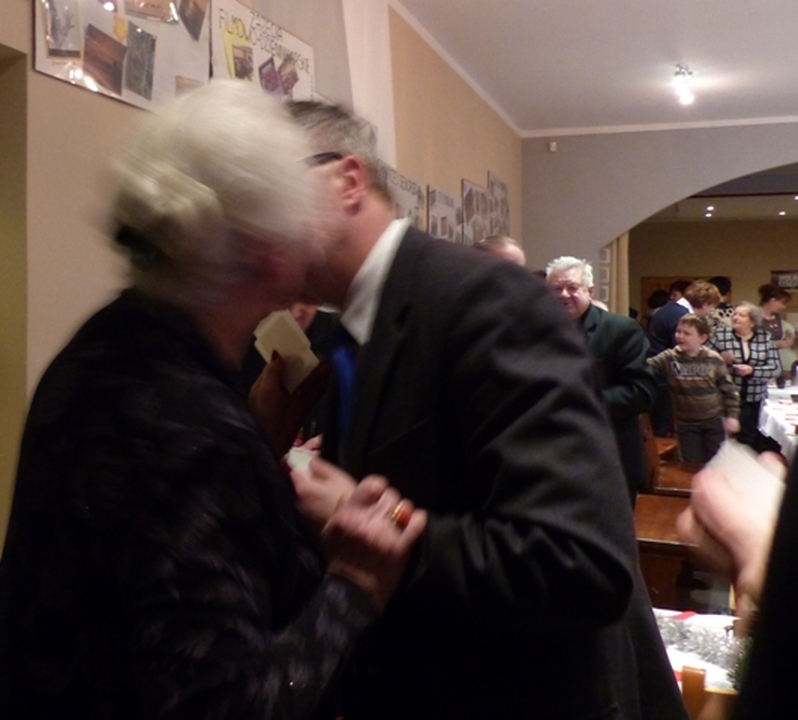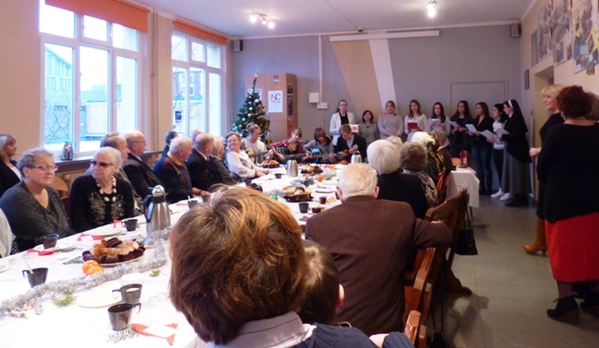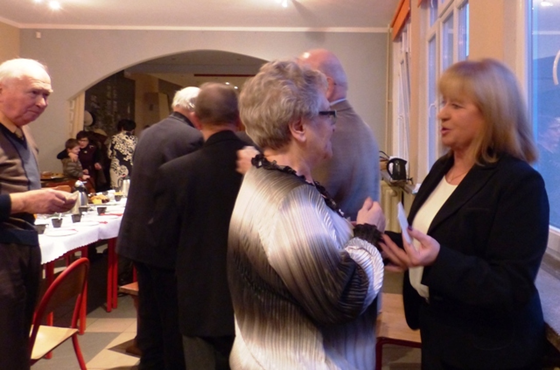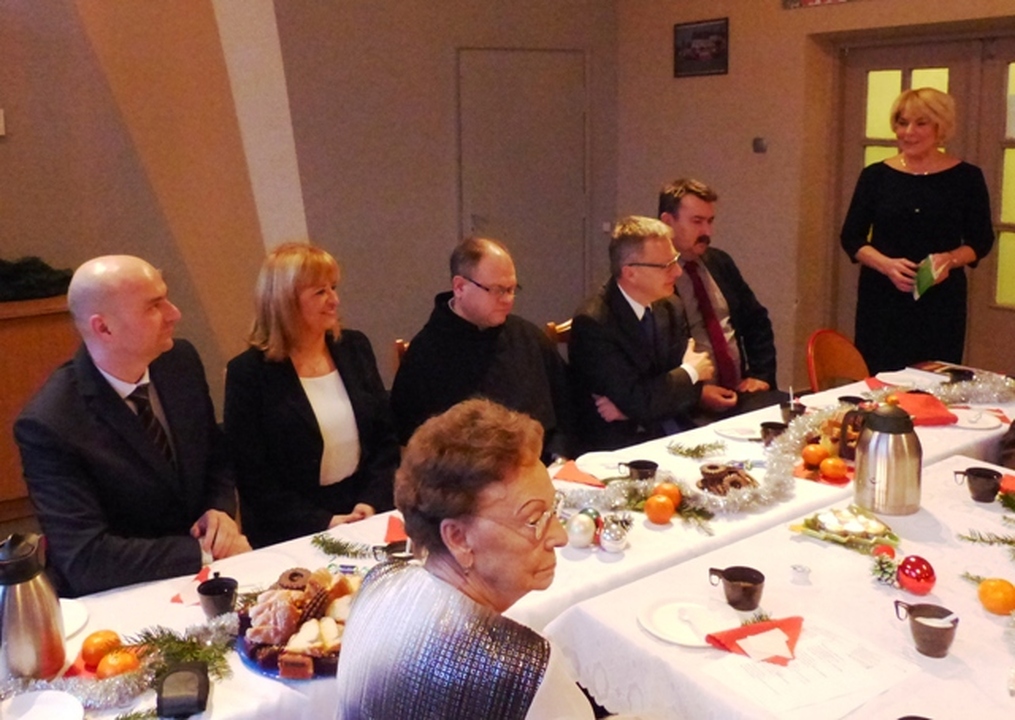 Swoją obecnością uroczystość zaszczycili: burmistrz Darłowa Arkadiusz Klimowicz, wójt gminy Darłowo Radosław Głażewski, przewodnicząca Rady Miejskiej Krystyna Sokolińska, proboszcz Parafii MB. Częstochowskiej Stanisław Piankowski, dyrektorzy placówek oświatowych i kulturalnych, szefowie organizacji pozarządowych zaprzyjaźnieni z pionierami oraz liczni członkowie Klubu Pionierów Ziemi Darłowskiej. Spotkanie opłatkowe zainaugurował występ zespołu muzycznego licealistów pod kierunkiem siostry Emanueli, który grał i śpiewał pastorałki. Na wstępie spotkania minutą ciszy uczczono zmarłych w minionym roku pionierów. Dalej wszystkich serdecznie powitała na opłatku prezes Klubu Pionierów Bożena Tomalak. Przy choince, kawie, herbacie, ciastach i owocach śpiewano kolędy, dzielono się opłatkiem i rozmawiano, co przyniesie nam Nowy Rok 2015. Burmistrz Darłowa, proboszcz kościoła Mariackiego i przewodnicząca Rady Miejskiej złożyli przybyłym życzenia zdrowia, radości, pomyślnego nowego roku i nadziei na lepsze jutro.