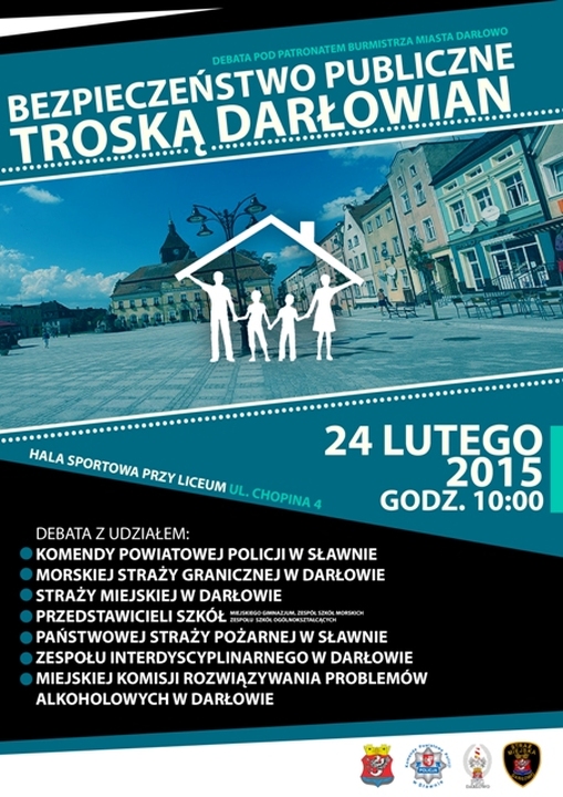 We wtorek 24 lutego 2015 w hali sportowej w Zespole Szkól im. S. Żeromskiego o godzinie 10:00 z inicjatywy burmistrza miasta rozpocznie się debata społeczna pod nazwą „Bezpieczeństwo publiczne troską darłowian”,