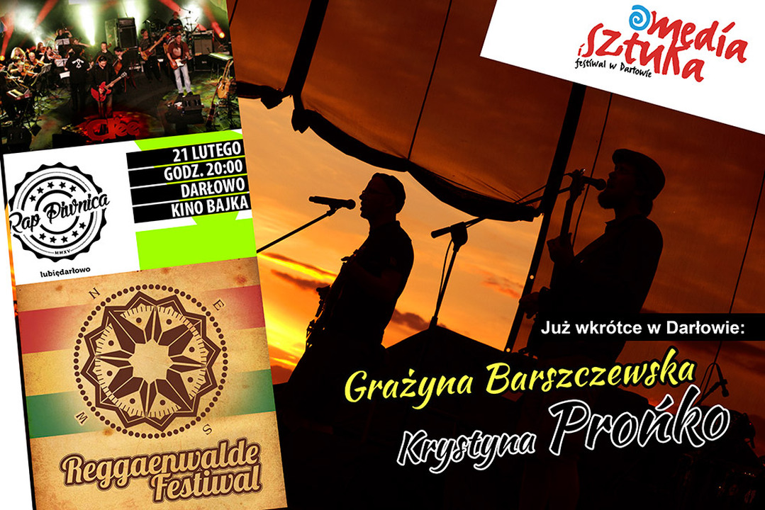 Jeżeli chodzi o poezję śpiewaną - to już wiosną (w kwietniu) - w mieście króla Eryka usłyszymy Grażynę Barszczewską (16 kwietnia). Polska aktorka filmowa, teatralna i telewizyjna - znana m.in. z „Kariery Nikodema Dyzmy", czy seriali „Londyńczycy", „Na dobre i złe" - w Darłowie zaprezentuje się jako wokalistka. Natomiast w ramach obchodów 702. Urodzin Miasta Darłowa - gwiazdą Dni Darłowa będzie KRYSTYNA PROŃKO.
