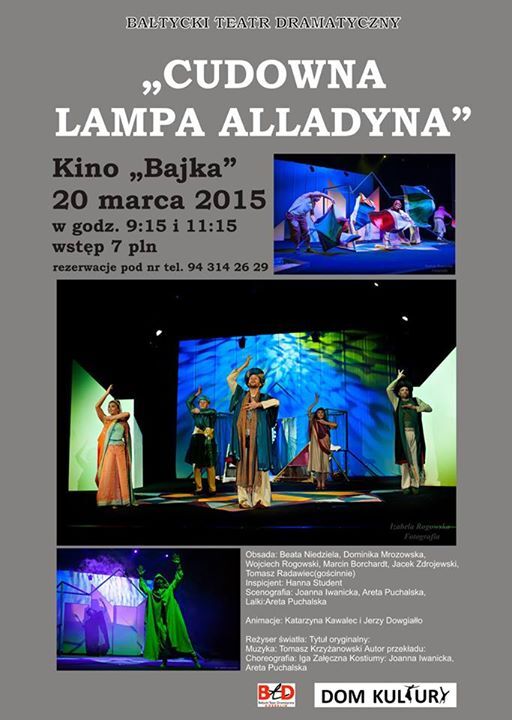 Nasza propozycja teatralna dla najmłodszych i nie tylko: "Cudowna lampa Aladyna" w kinie "Bajka" 20 marca w godz. 9:15 i 11:15